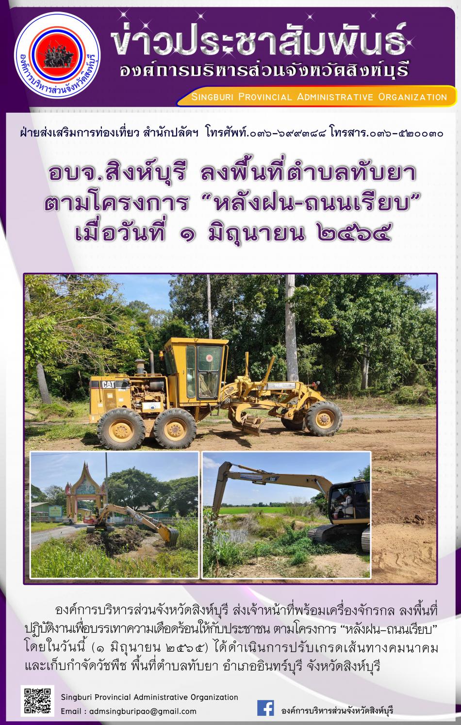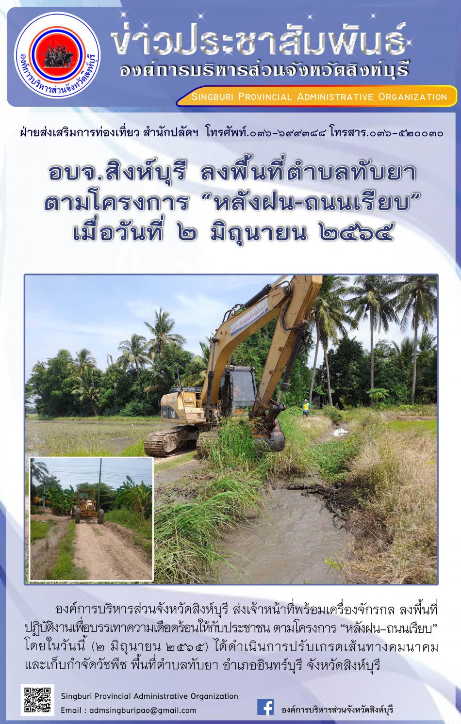 อบจ.สิงห์บุรี ลงพื้นที่ตำบลทับยา ตามโครงการ "หลังฝน-ถนนเรียบ" [2 มิถุนายน 2565]
