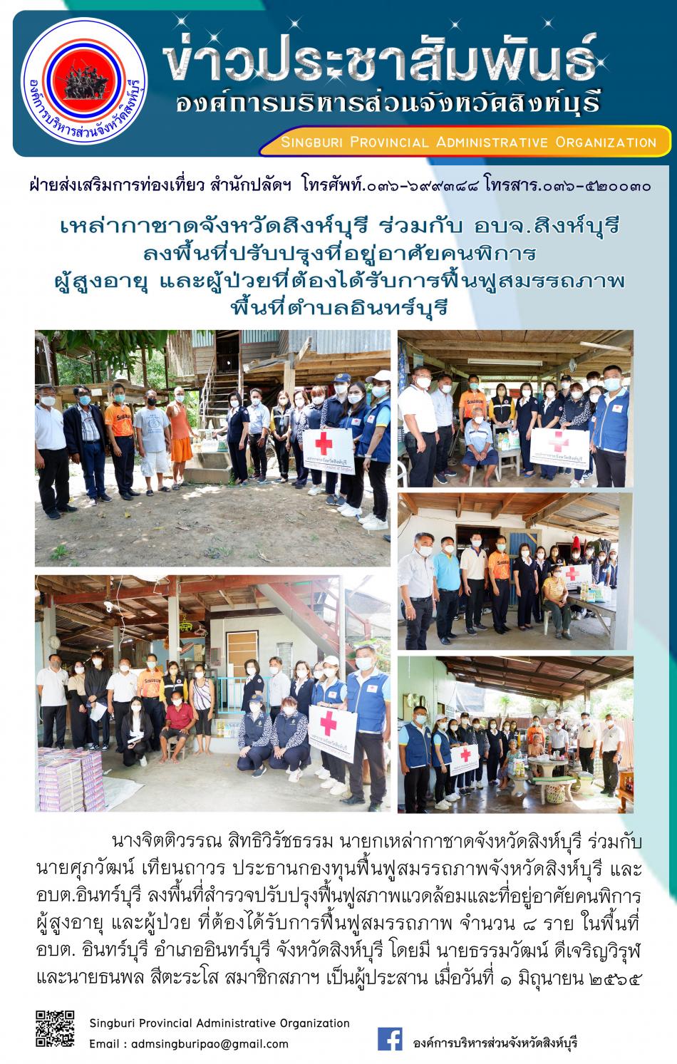 เหล่ากาชาดจังหวัดสิงห์บุรี ร่วมกับ อบจ.สิงห์บุรี ลงพื้นที่ปรับปรุงที่อยู่อาศัยคนพิการ ผู้สุงอายุ และผู้ป่วยที่ต้องได้รับการฟื้นฟูสมรรถภาพ [1 มิถุนายน 2565]