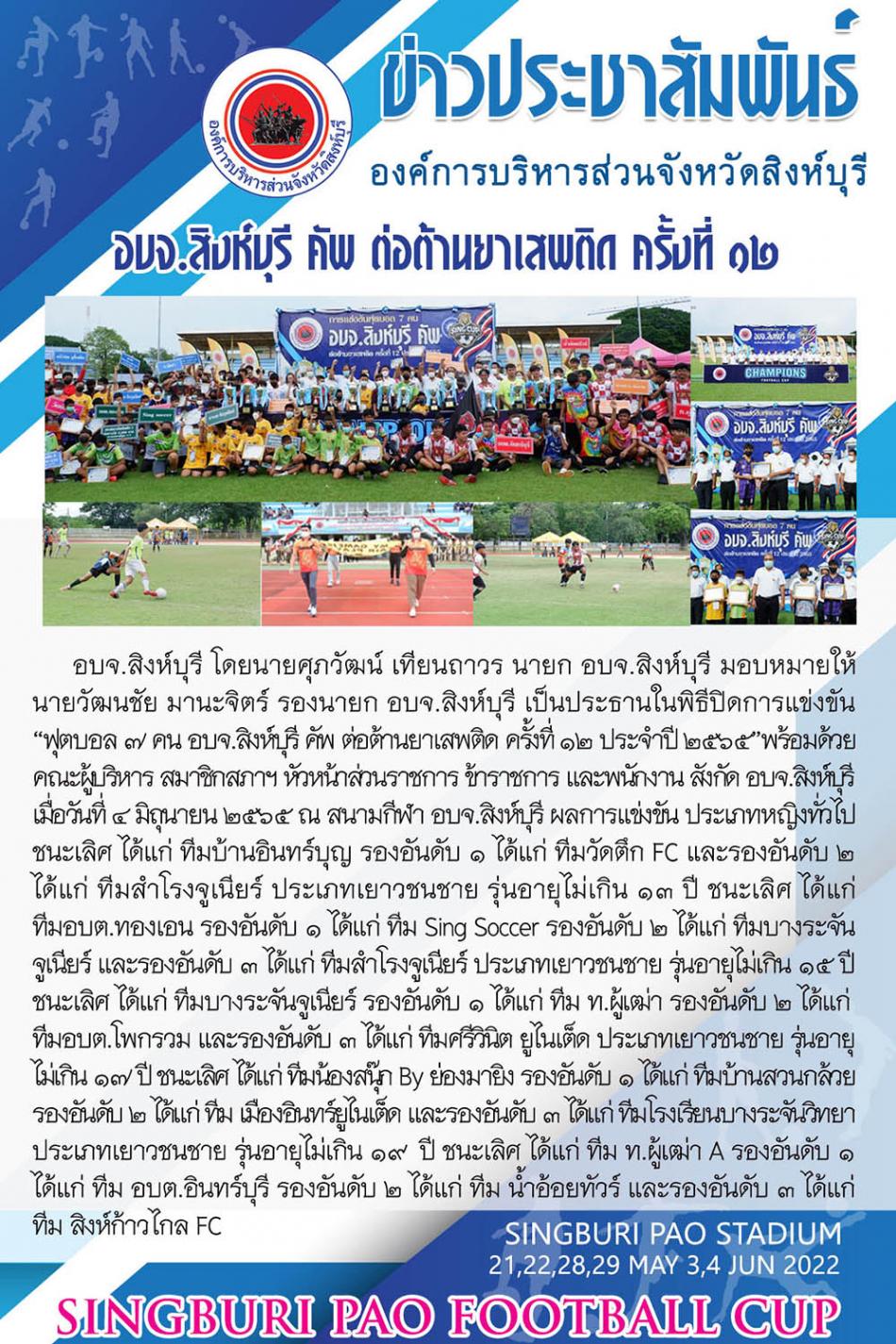 อบจ.สิงห์บุรี คัพ ต่อต้านยาเสพติด ครั้งที่ 12 ประจำปี 2565 [4 มิถุนายน 2565]