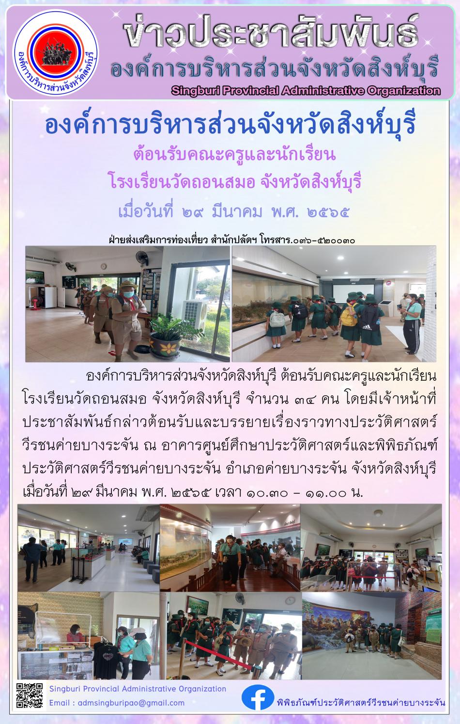 องค์การบริหารส่วนจังหวัดสิงห์ ต้อนรับคณะครูและนักเรียน โรงเรียนถอนสมอ จังหวัดสิงห์บุรี [29 มีนาคม 2565]