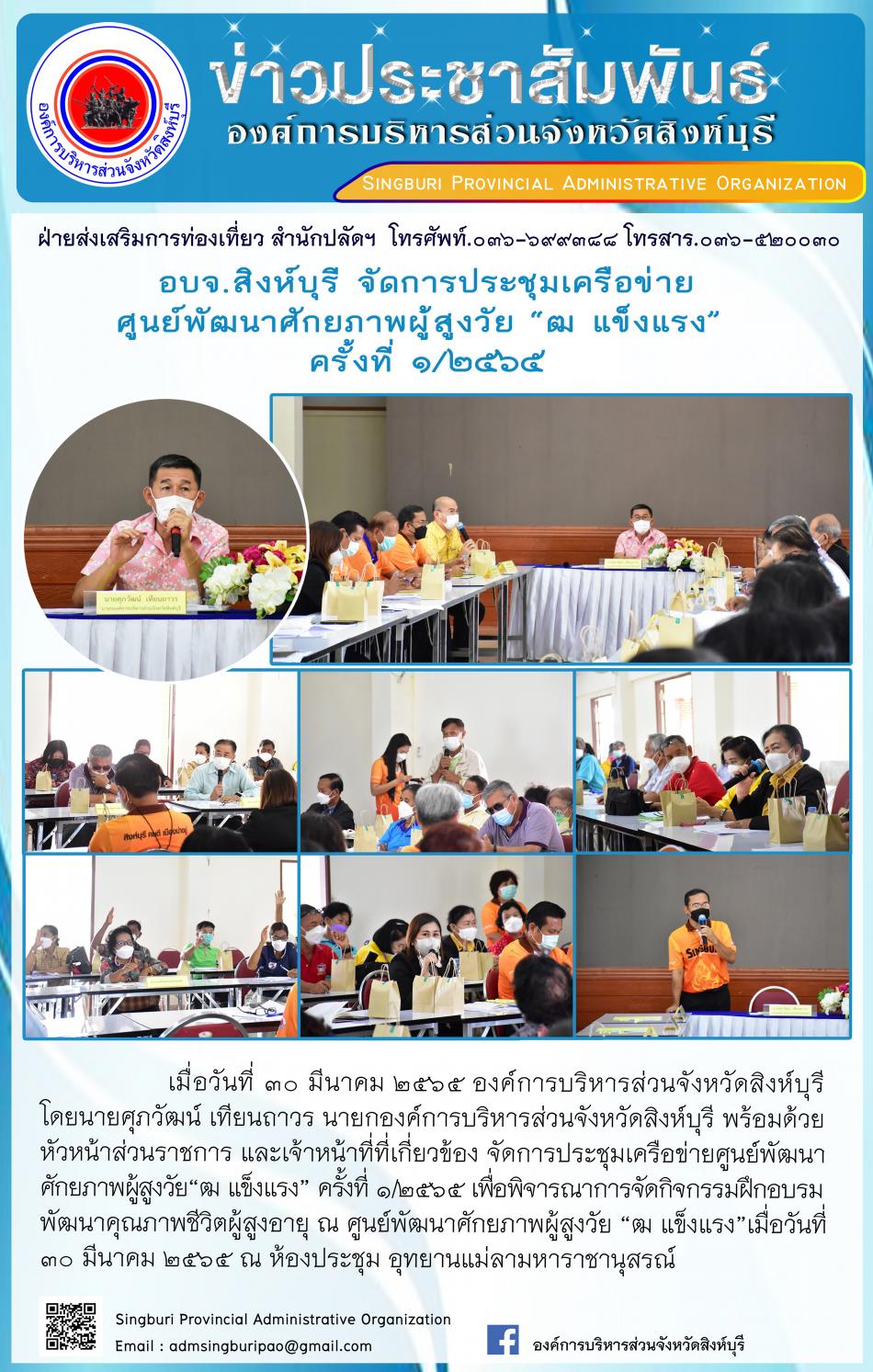 อบจ.สิงห์บุรี จัดการประชุมเครือข่าย ศูนย์พัฒนาศักยภาพผู้สูงวัย "ฒ แข็งแรง" ครั้งที่ 1/2565 [30 มีนาคม 2565]