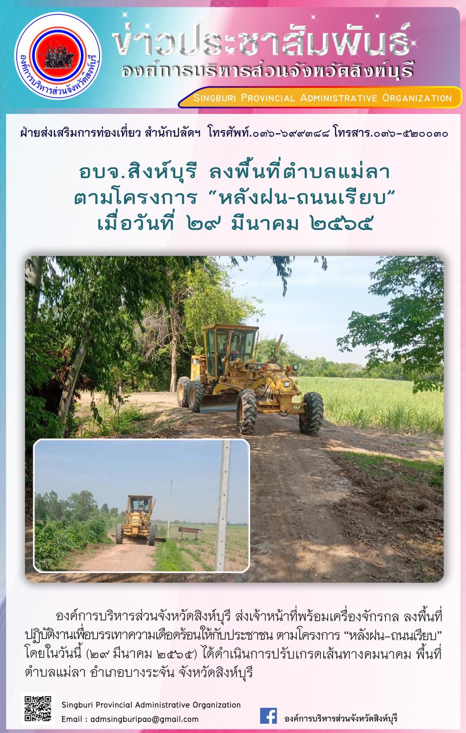 อบจ.สิงห์บุรี ลงพื้นที่ตามโครงการ "หลังฝนถนนเรียบ" [29 มีนาคม 2565]