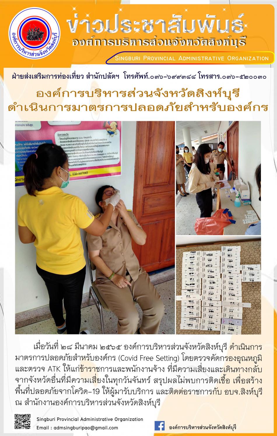 องค์การบริหารส่วนจังหวัดสิงห์บุรี ดำเนินการมาตรการปลอดภัยสำหรับองค์กร ( Covid Free Setting) [28 มีนาคม 2565]