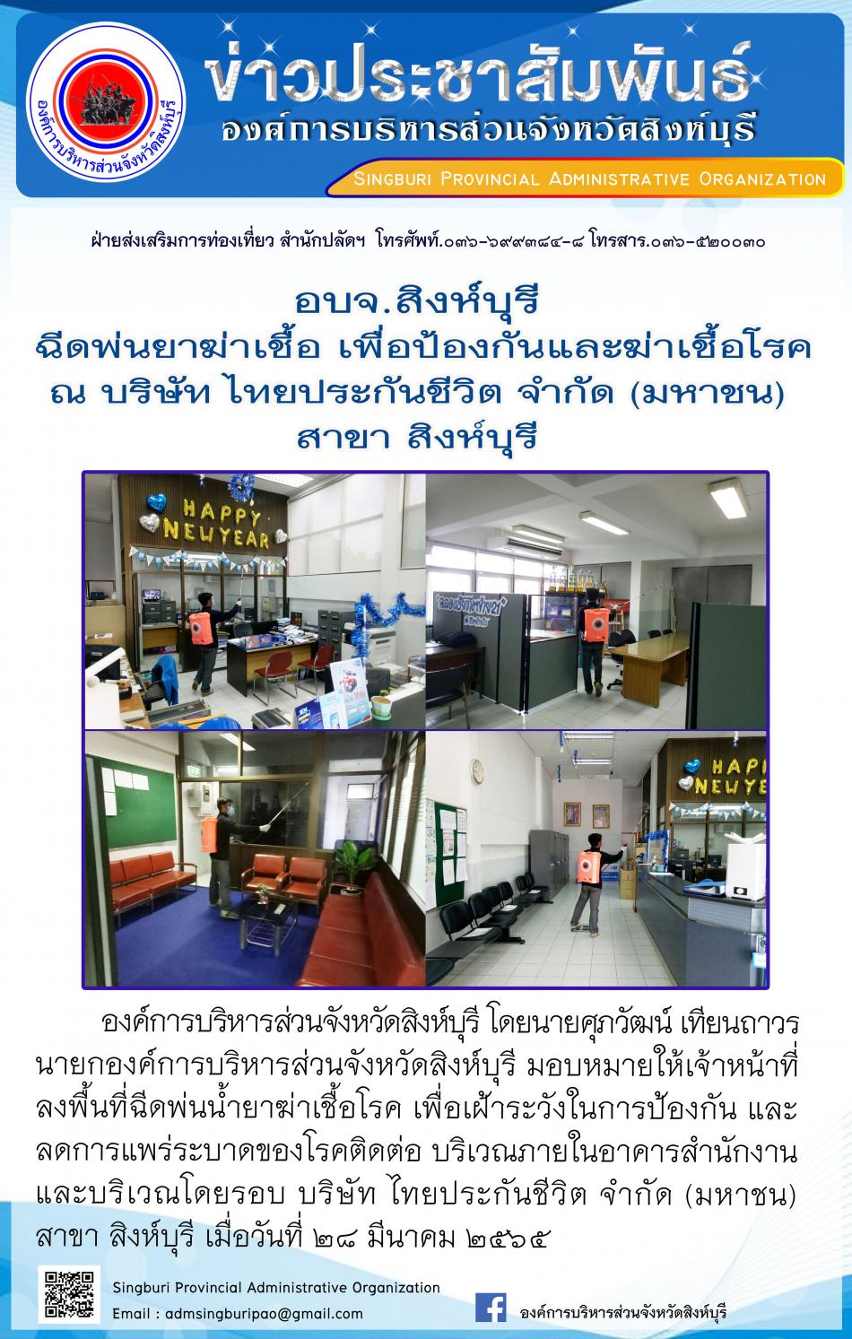 อบจ.สิงห์บุรี ฉีดพ่นน้ำยาฆ่าเชื้อ เพื่อป้องกันและฆ่าเชื้อโรค [28 มีนาคม 2565]