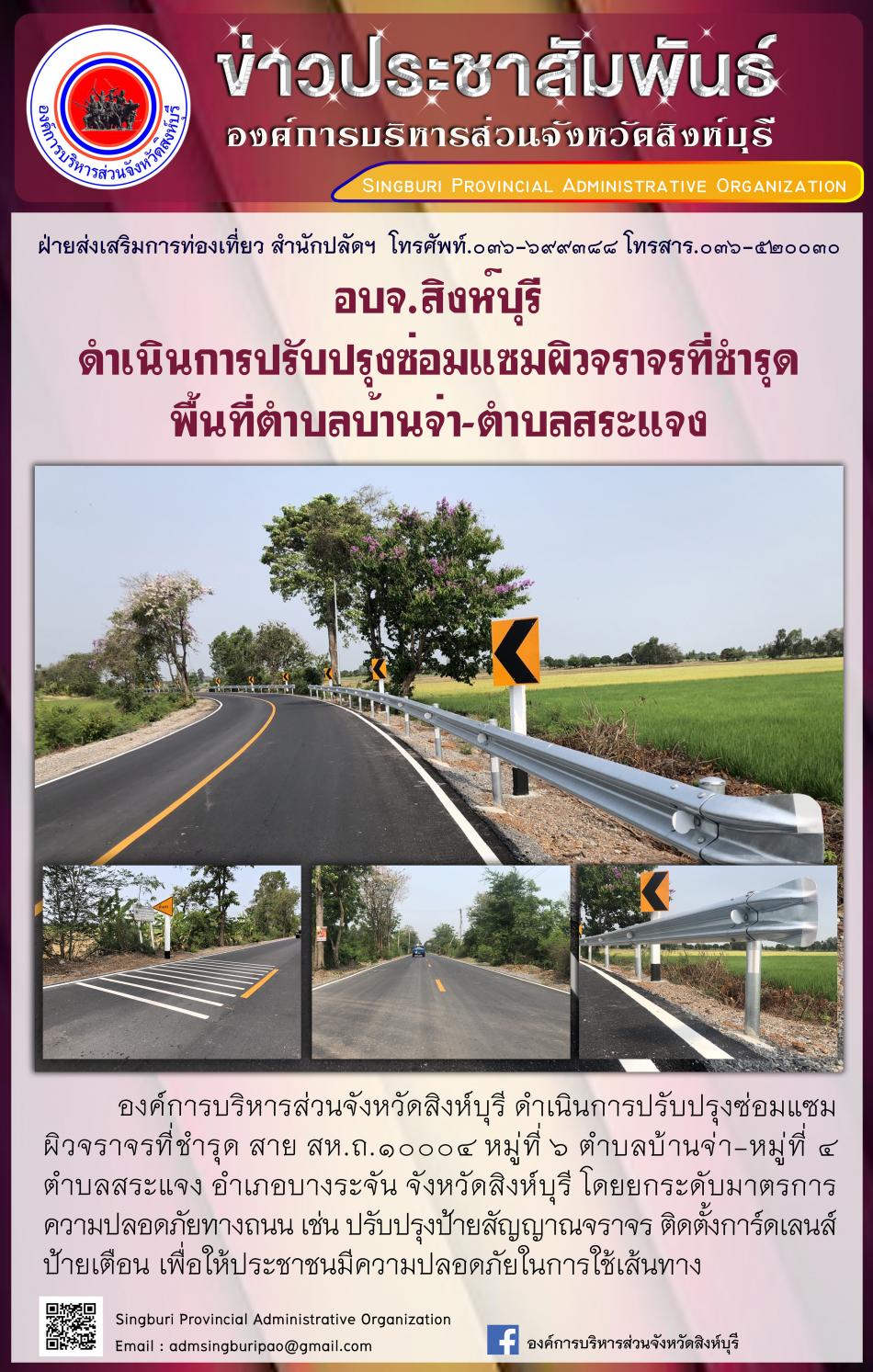 อบจ.สิงห์บุรี ดำเนินการปรับปรุงซ่อมแซมผิวจราจรที่ชำรุด พื้นที่ตำบลบ้านจ่า - ตำบลสระแจง [15 มีนาคม 2565]