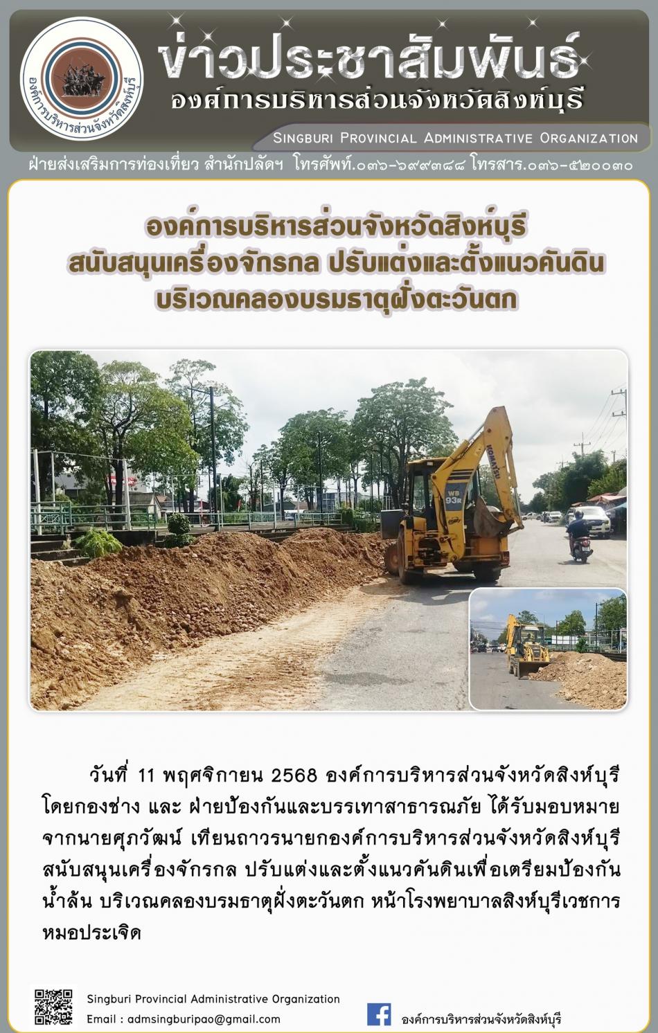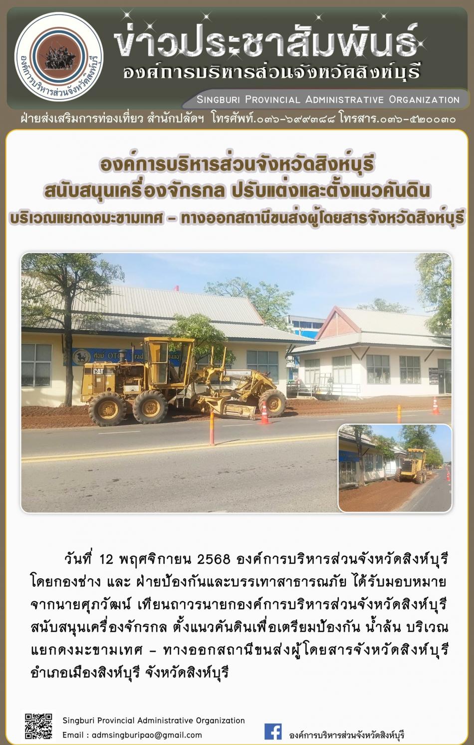 องค์การบริหารส่วนจังหวัดสิงห์บุรี สนับสนุนเครื่องจักรกล ตั้งแนวคันดินริมถนน 309 บริเวณศาลหลักเมือง [11 พฤศจิกายน 2568]