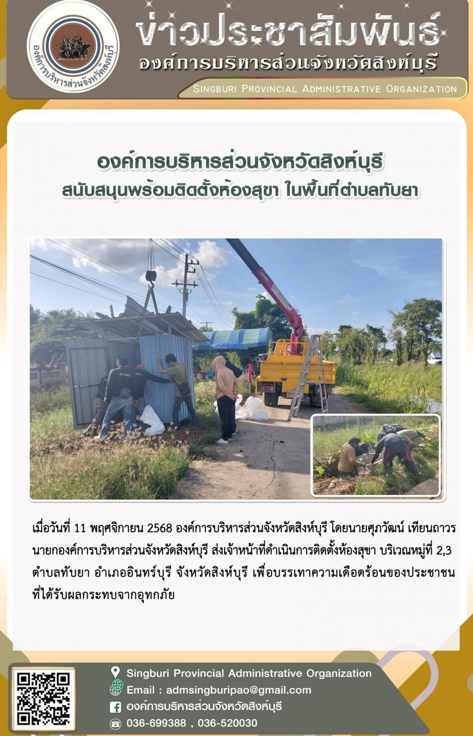 องค์การบริหารส่วนจังหวัดสิงห์บุรี สนับสนุนพร้อมติดตั้งห้องสุขาในพื้นที่ตำบลทับยา [11 พฤศจิกายน 2568]