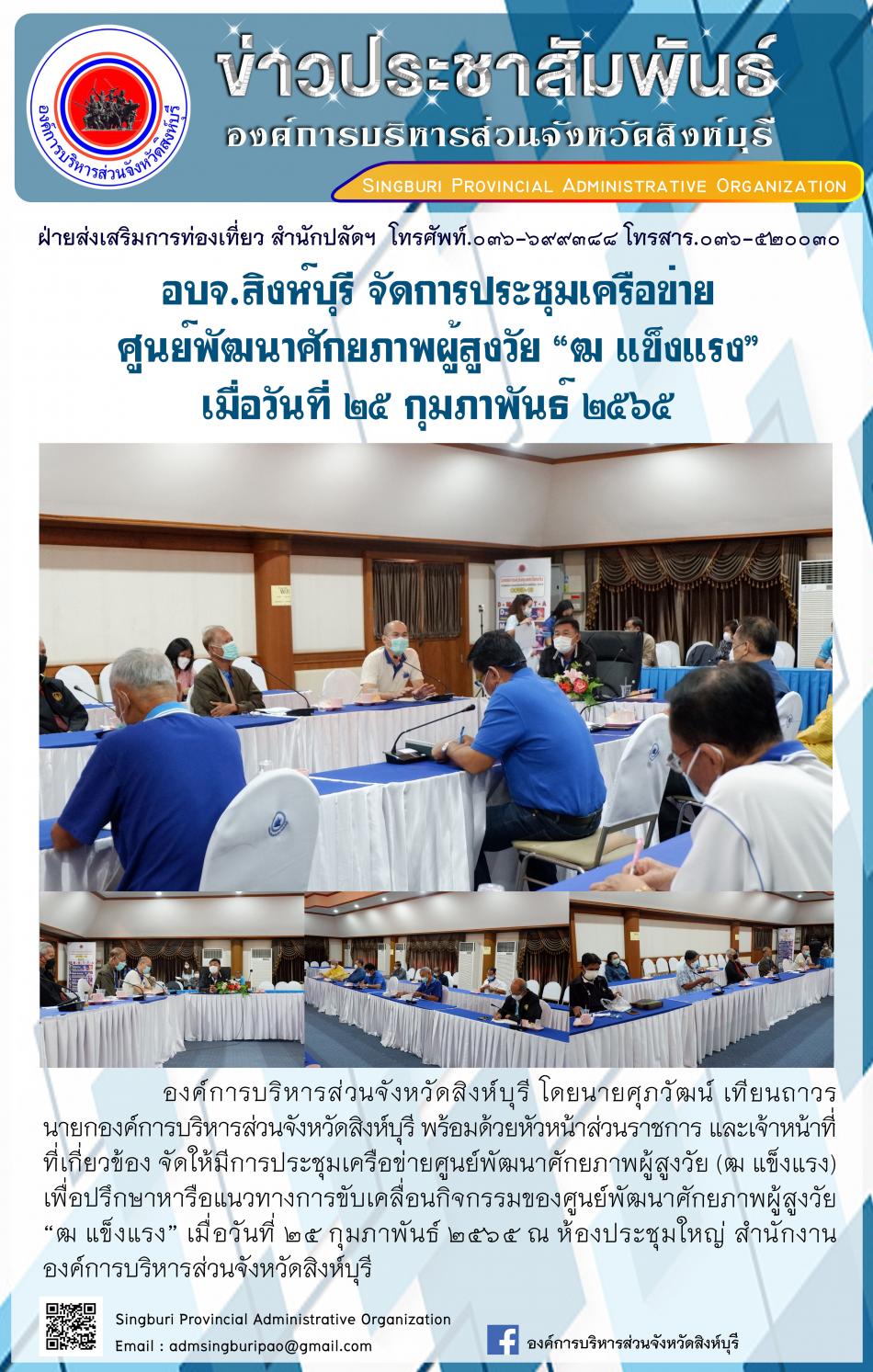 อบจ.สิงห์บุรี จัดประชุมเครือข่ายศูนย์พัฒนาศักยภาพผู้สูงวัย " ฒ แข็งแรง" [25 กุมภาพันธ์ 2565]