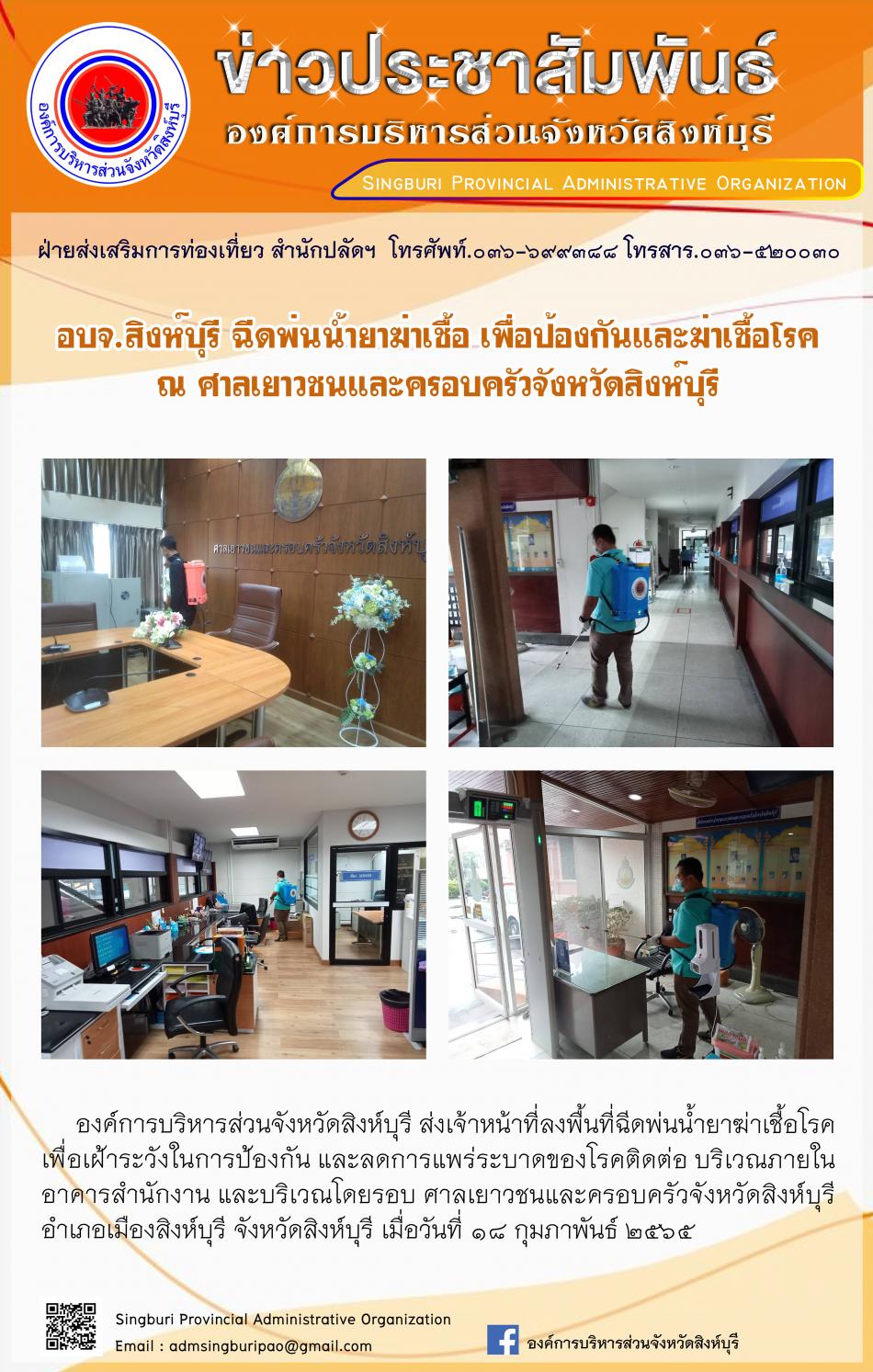อบจ.สิงห์บุรี ฉีดพ่นน้ำยาฆ่าเชื้อ เพื่อป้องกันและฆ่าเชื้อโรค ณ ศาลเยาวชนและครอบครัวจังหวัดสิงห์บุรี [18 กุมภาพันธ์ 2565]
