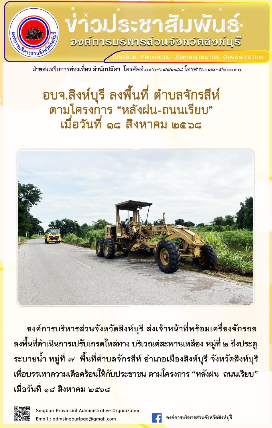 อบจ. สิงห์บุรี ลงพื้นที่ ตำบลจักรสีห์ ตามโครงการ “ หลังฝน-ถนนเรียบ”ลงพื้นที่ [18 สิงหาคม 2568]