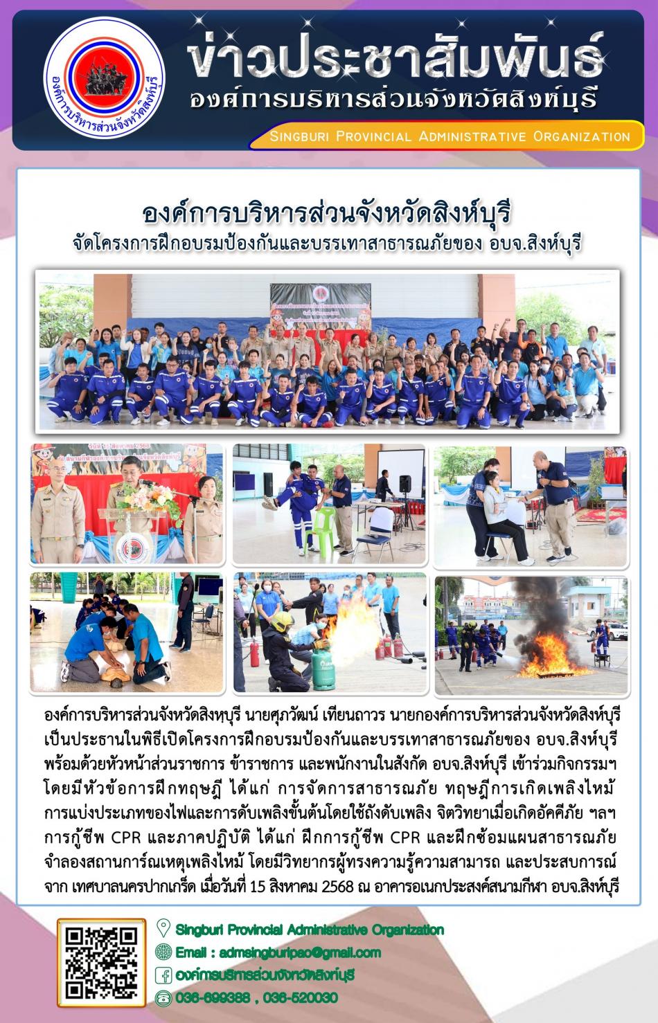 องค์การบริหารส่วนจังหวัดสิงห์บุรี จัดโครงการฝึกอบรมป้องกันและบรรเทาสาธารณภัย อบจ. สิงห์บุรี [15 สิงหาคม 2568]