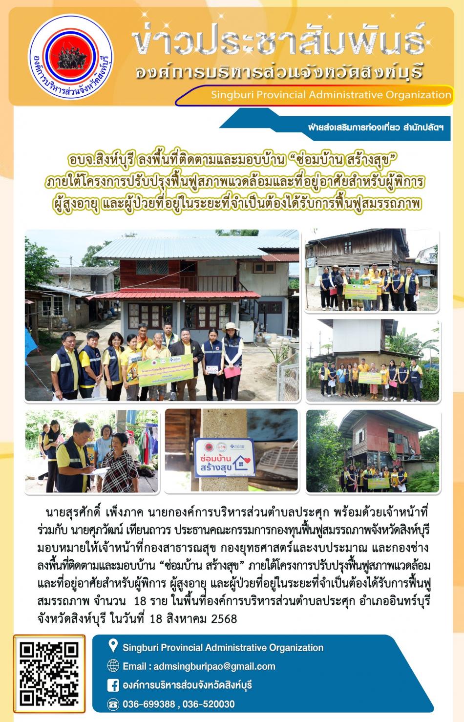 อบจ. สิงห์บุรี ลงพื้นที่ติดตามและมอบบ้าน“ ซ่อมบ้าน สร้าง” ภายใต้โครงการปรับปรุงฟื้นฟูสภาพแวดล้อมและที่อยู่อาศัยสำหรับภายใต้โครงการปรับปรุงฟื้นฟูสภาพแวดล้อมและที่อยู่อาศัยสำหรับผู้ ผู้สูง... [18 สิงหาคม 2568]