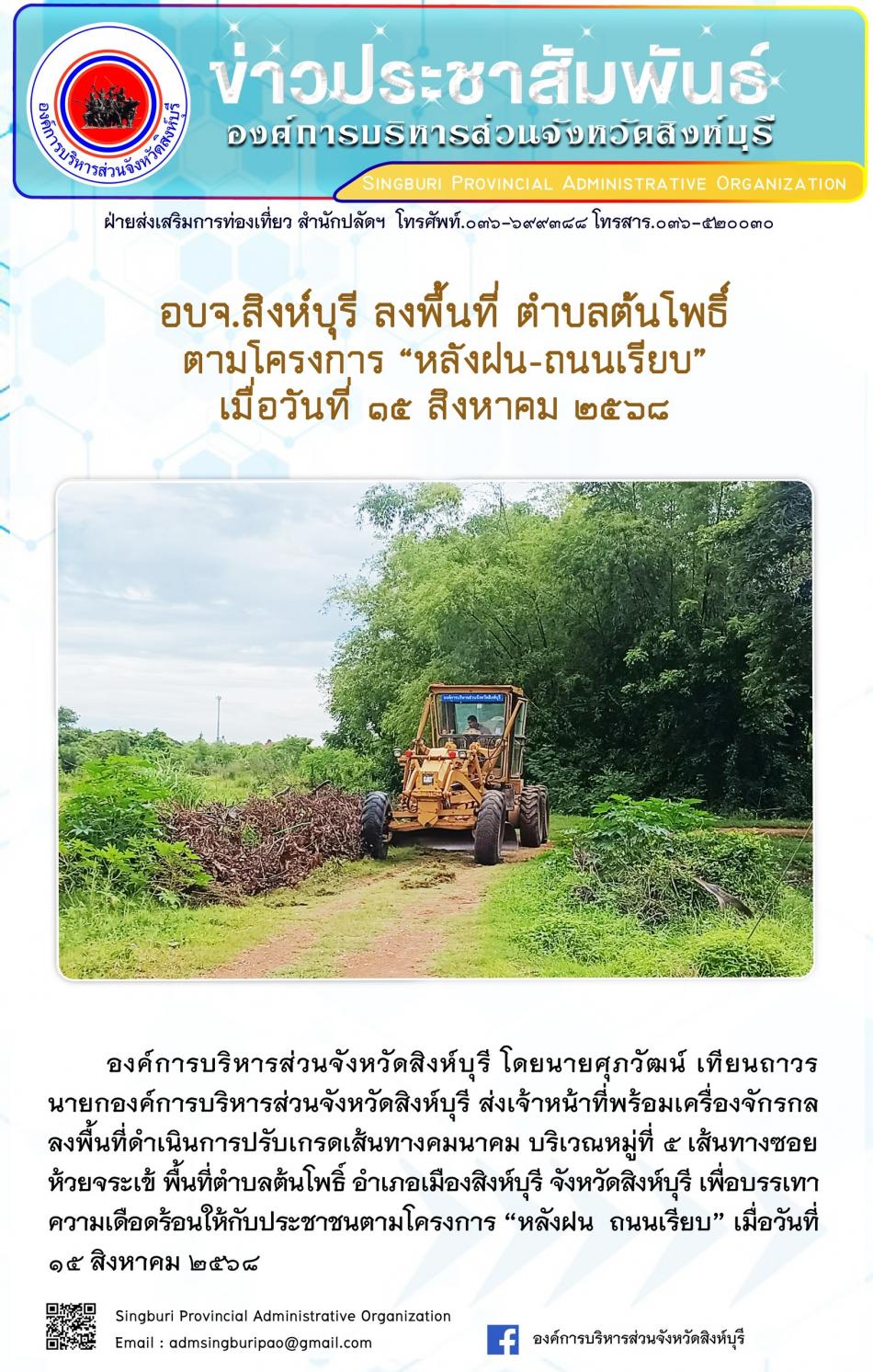 อบจ. สิงห์บุรี ลงพื้นที่ ตำบลต้นโพธิ์ ตามโครงการ “ หลังฝน-ถนนเรียบ” [15 สิงหาคม 2568]