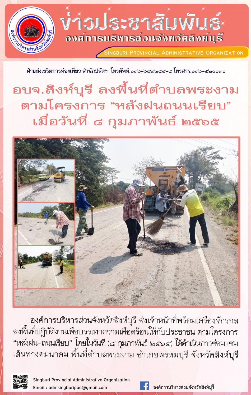 อบจ.สิงห์บุรี ลงพื้นที่ตำบลพระงาม ตามโครงการ "หลังฝนถนนเรียบ" [8 กุมภาพันธ์ 2565]