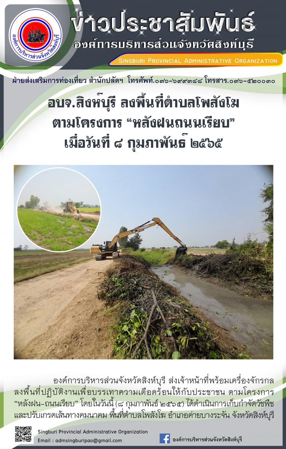 อบจ.สิงห์บุรี ลงพื้นที่ตำบลโพสังโฆ ตามโครงการ "หลังฝนถนนเรียบ" [8 กุมภาพันธ์ 2565]