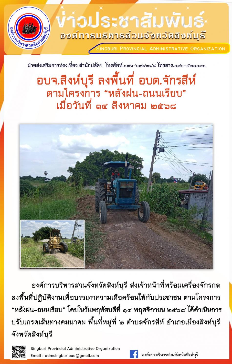 อบจ. สิงห์บุรี ลง อบต. จักสีห์ ตามโครงการ“ หลังฝน -ถนนเรียบ” [14 สิงหาคม 2568]