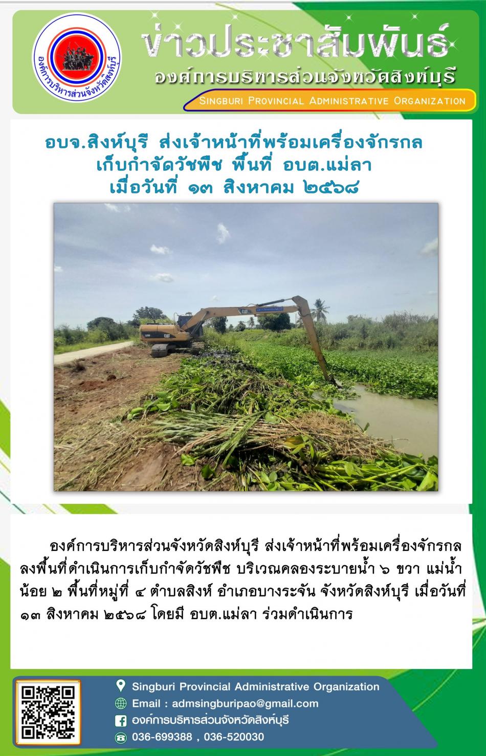 อบจ. สิงห์บุรี ส่งเจ้าหน้าที่พร้อมเครื่องจักรกลเก็บกำส่งเจ้าหน้าที่พร้อมเครื่องจักรกลเก็บกำจัด พื้นที่ อบต. แม่ลา [13 สิงหาคม 2568]