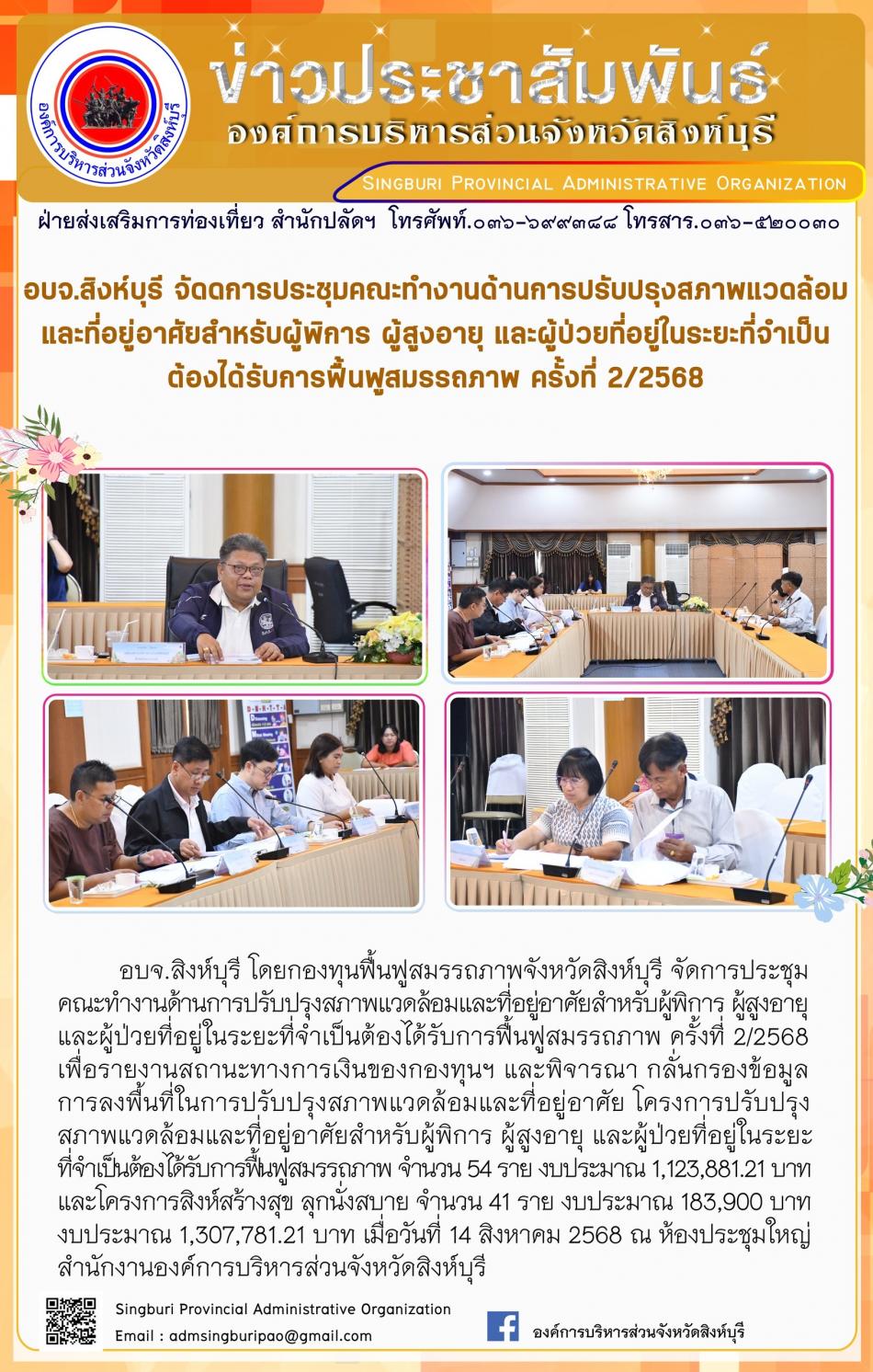 อบจ. สิงห์บุรี จัดโครงการประชุมทำงานจัดโครงการประชุมทำงานด้านการปรับปรุงสภาพแวดล้อมและที่อยู่อาศัย ผู้พิการ ผู้สูงอายุ... [14 สิงหาคม 2568]
