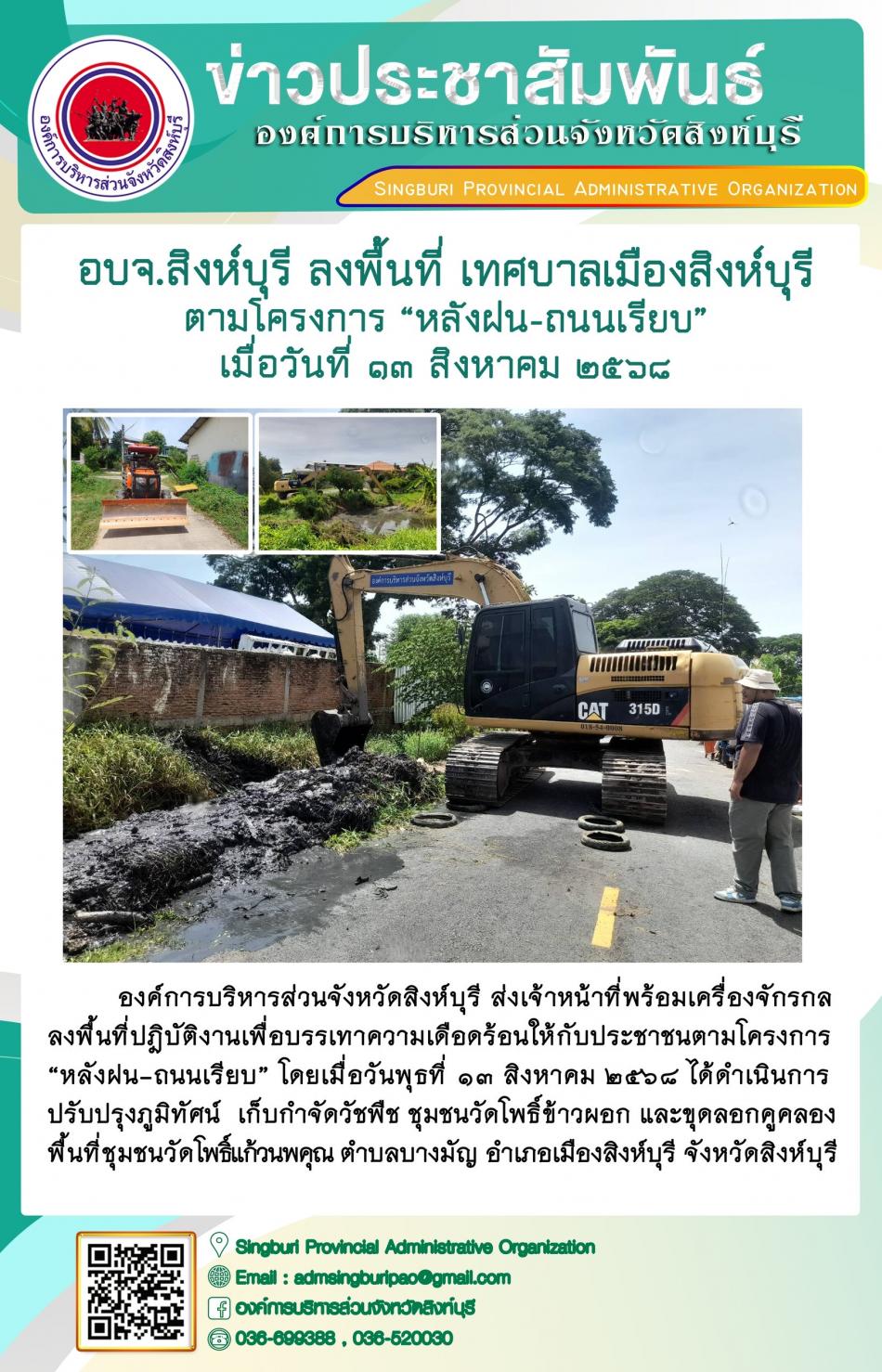 อบจ. สิงห์บุรี ลงพื้นที่ เทศบาลเมืองสิงห์ ตามโครงการ “ หลังฝน-ถนนเรียบ” [13 สิงหาคม 2568]
