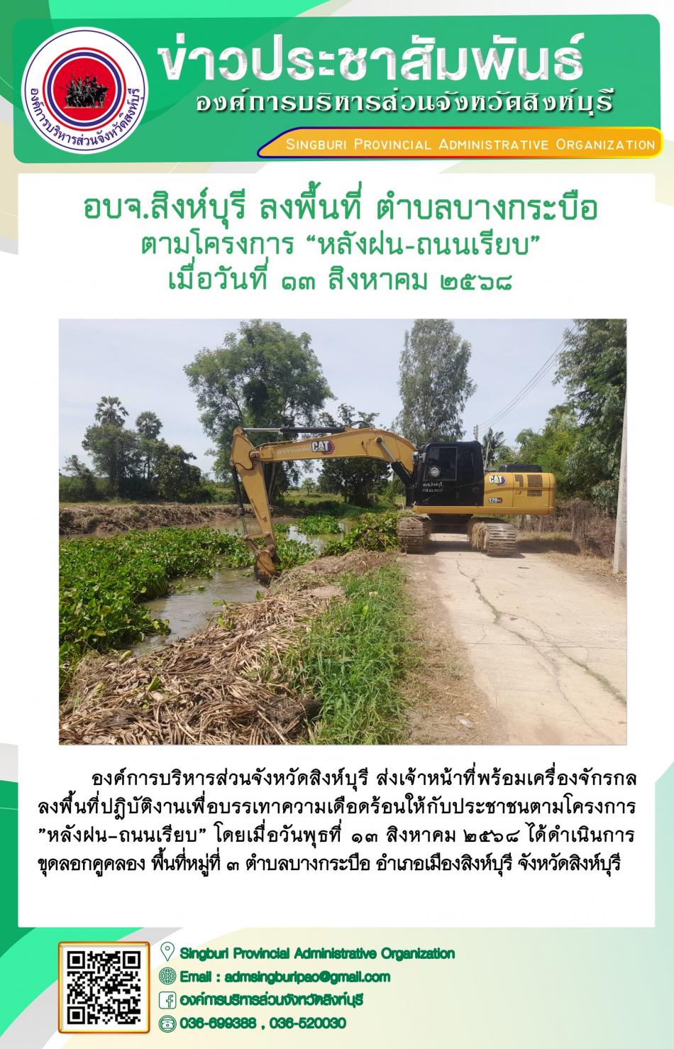 อบจ. สิงห์บุรี ลงพื้นที่ ตำบลบางกระบือ ตามโครงการ “หลังฝน - ถนนเรียบ” [13 สิงหาคม 2568]