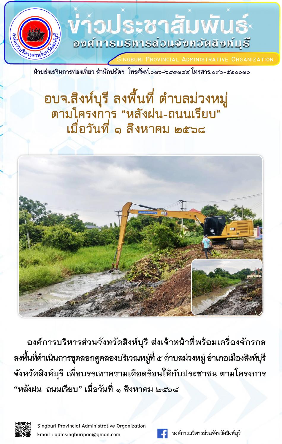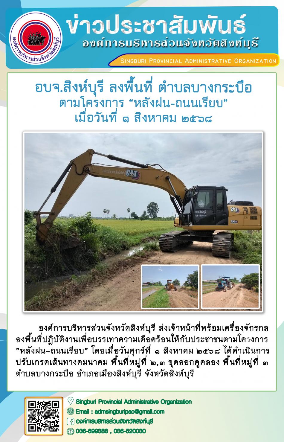 อบจ.สิงห์บุรี ลงพื้นที่ ตำบลม่วงหมู่ ตามโครงการ "หลังฝน - ถนนเรียบ" [1 สิงหาคม 2568]