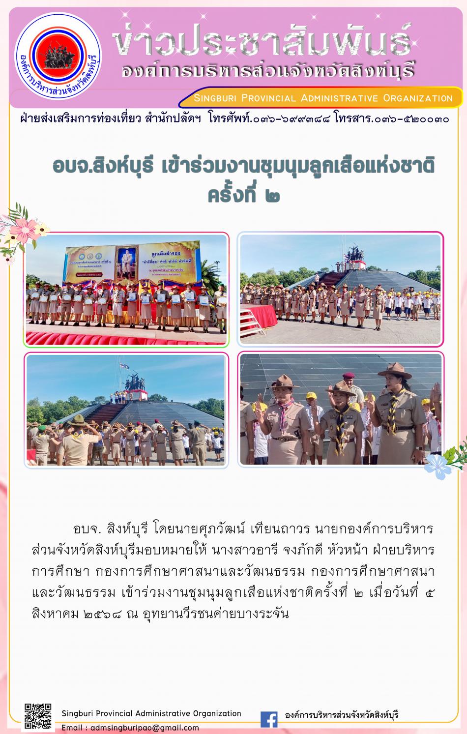 อบจ.สิงห์บุรี เข้าร่วมชุมนุนลูกเสือแห่งชาติ ครั้งที่ 2 [2 สิงหาคม 2568]