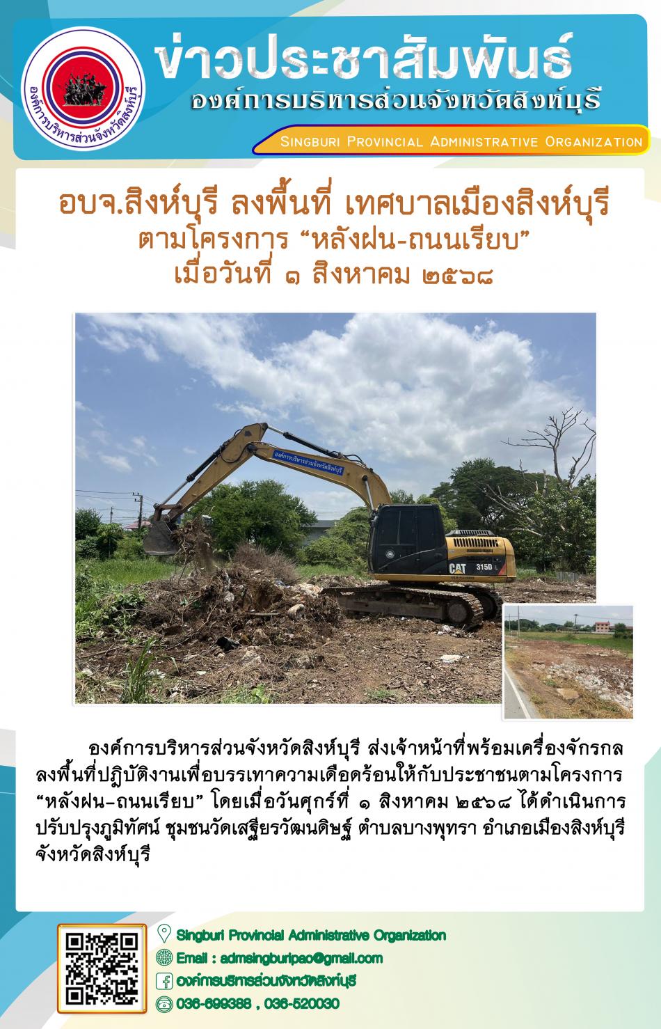 อบจ.สิงห์บุรี ลงพื้นที่ เทศบาลเมืองสิงห์บุรี ตามโครงการ "หลังฝน - ถนนเรียบ" [1 สิงหาคม 2568]