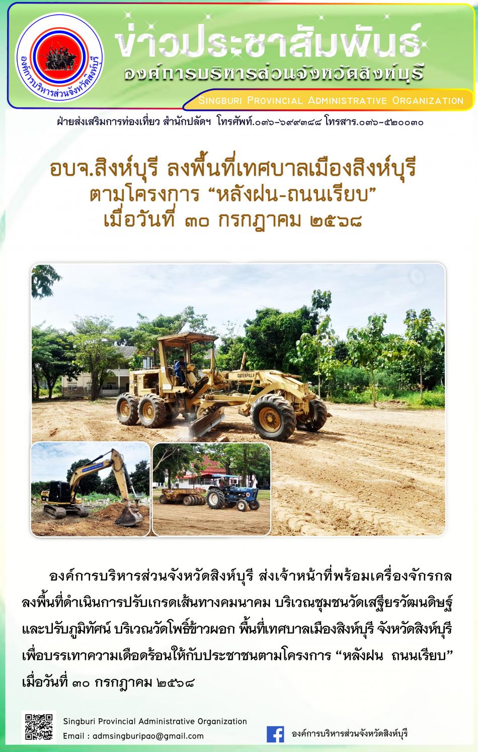 อบจ.สิงห์บุรี ลงพื้นที่ เทศบาลเมืองสิงห์บุรี ตามโครงการ "หลังฝน - ถนนเรียบ" [30 กรกฎาคม 2568]
