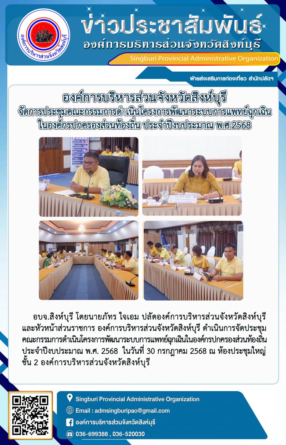 องค์การบริหารส่วนจังหวัดสิงห์บุรี จัดการประชุมคณะกรรมการดำเนินโครงการพัฒนาระบบการแพทย์ฉุกเฉินในองค์กรปกครองส่วนท้องถิ่น ประจำปีงบประมาณ พ.ศ.2568 [30 กรกฎาคม 2568]