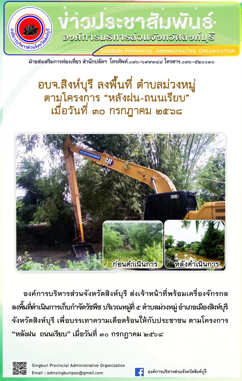 อบจ.สิงห์บุรี ลงพื้นที่ ตำบลม่วงหมู่ ตามโครงการ "หลังฝน - ถนนเรียบ" [30 กรกฎาคม 2568]