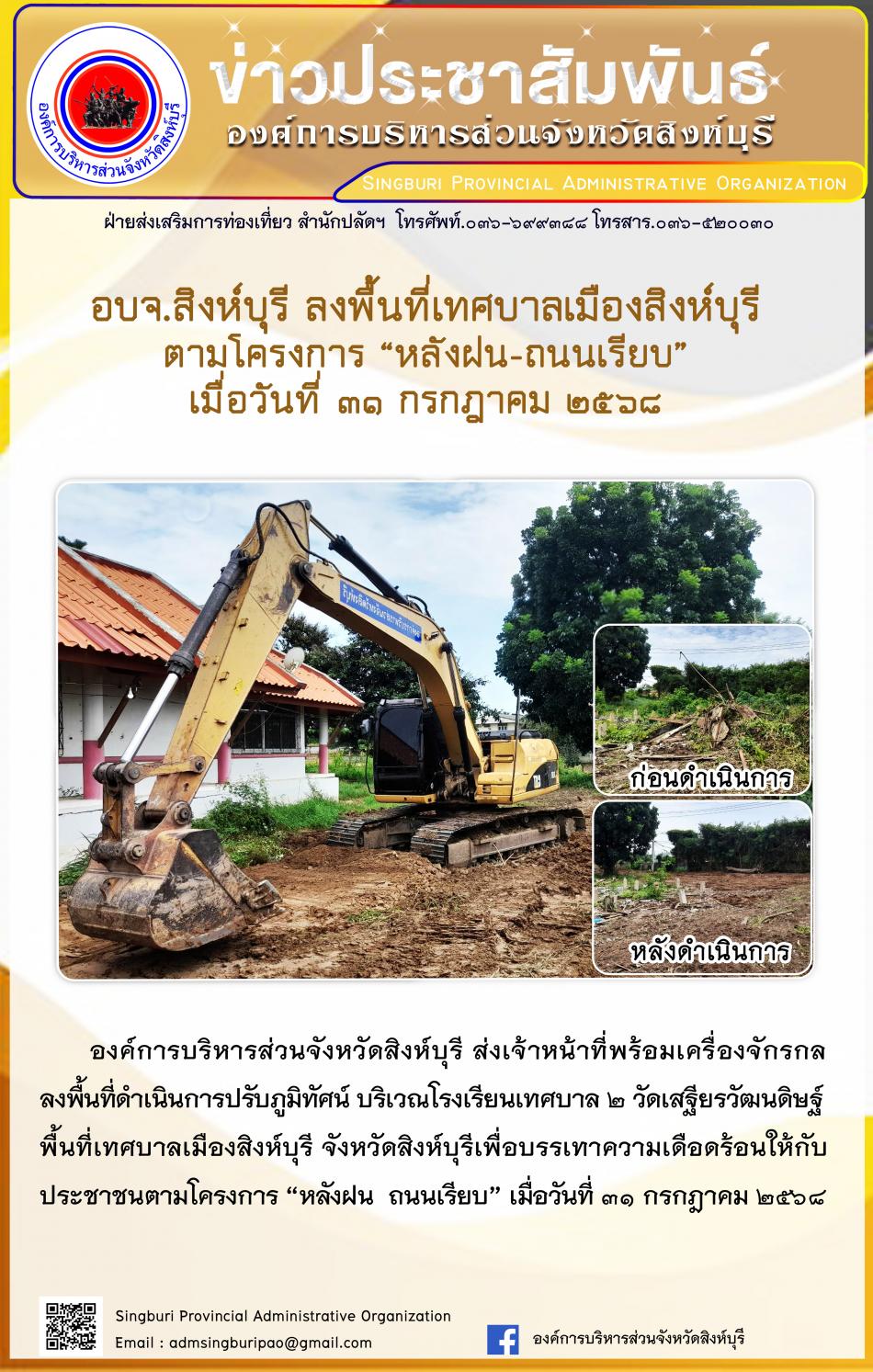 อบจ.สิงห์บุรี ลงพื้นที่ เทศบาลเมืองสิงห์บุรี ตามโครงการ "หลังฝน - ถนนเรียบ" [31 กรกฎาคม 2568]