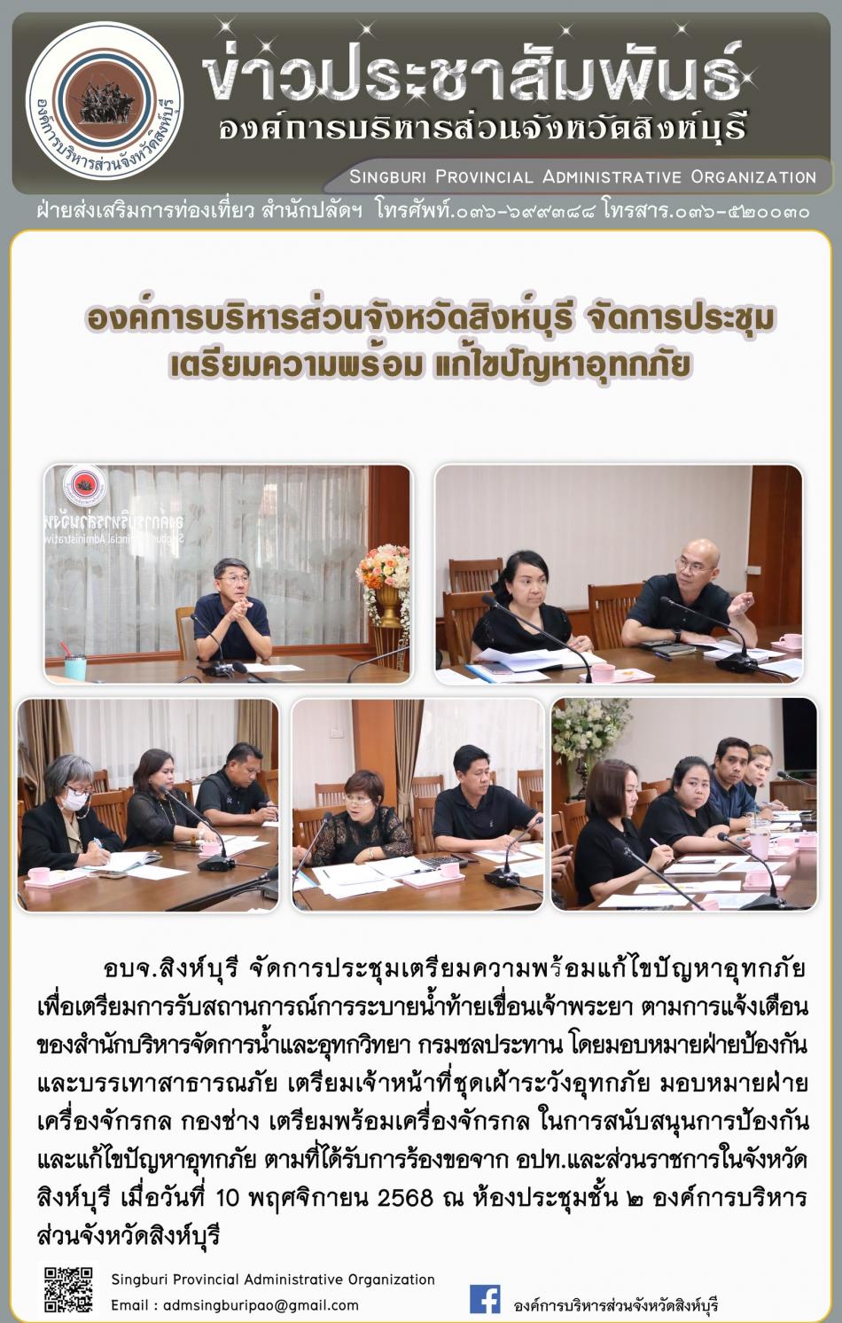 องค์การบริหารส่วนจังหวัดสิงห์บุรี จัดการประชุม เตรียมความพร้อม แก้ไขปัญหาอุทกภัย [10 พฤศจิกายน 2568]