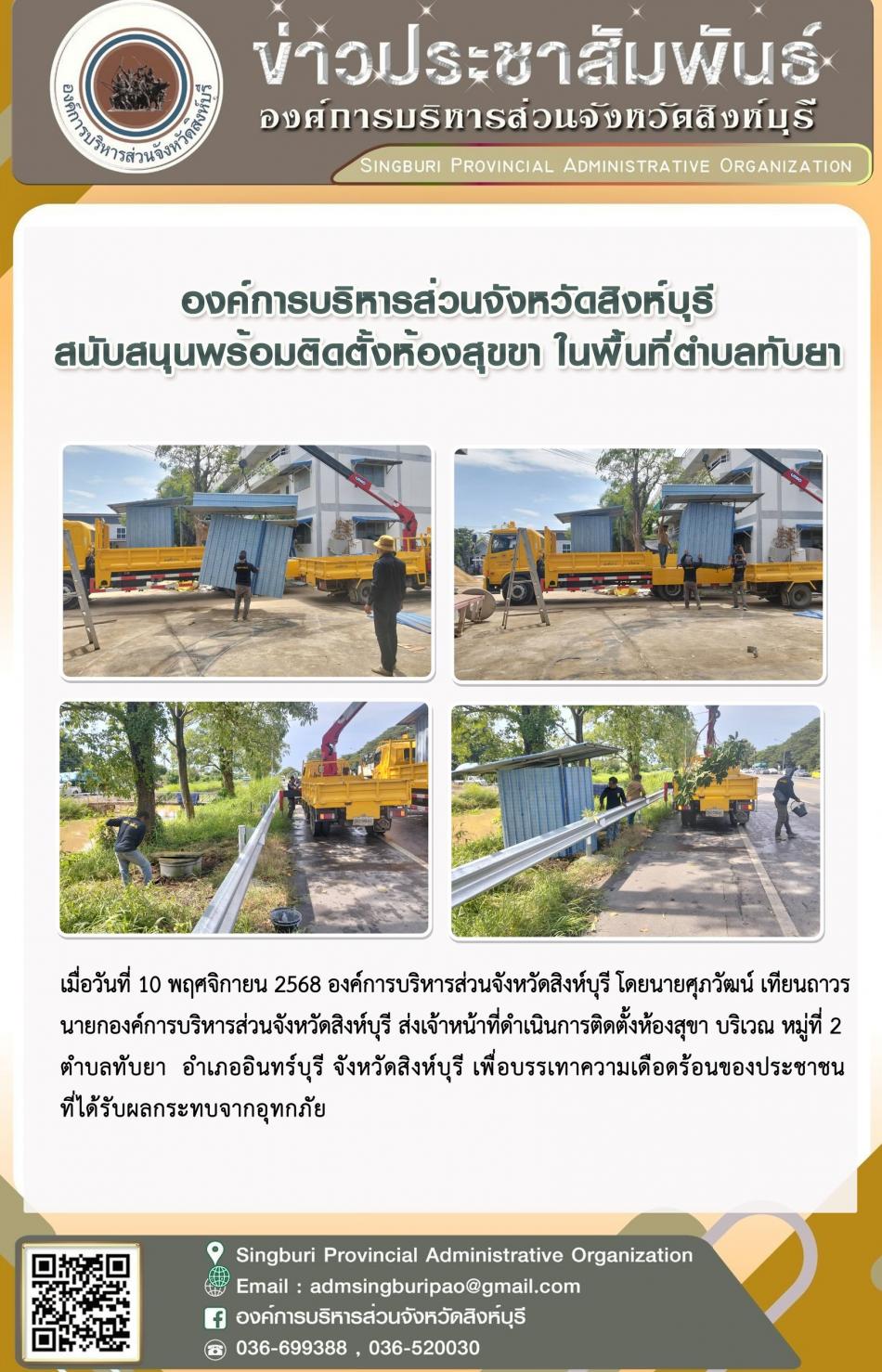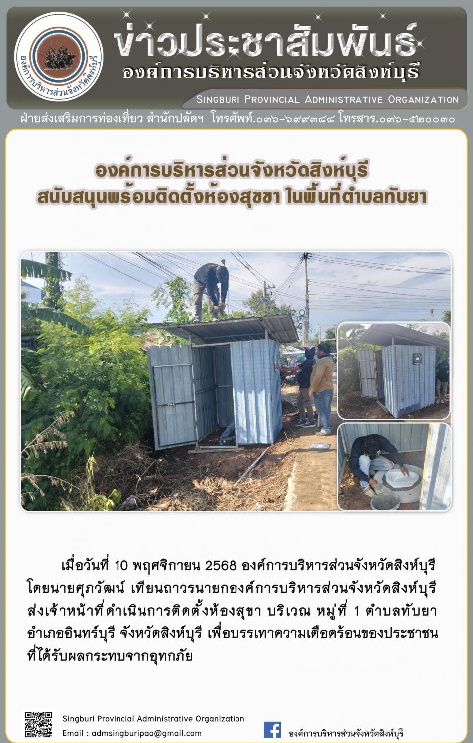 องค์การบริหารส่วนจังหวัดสิงห์บุรี สนับสนุนพร้อมติดตั้งห้องสุขา ในพื้นที่ตำบลทับยา [10 พฤศจิกายน 2568]