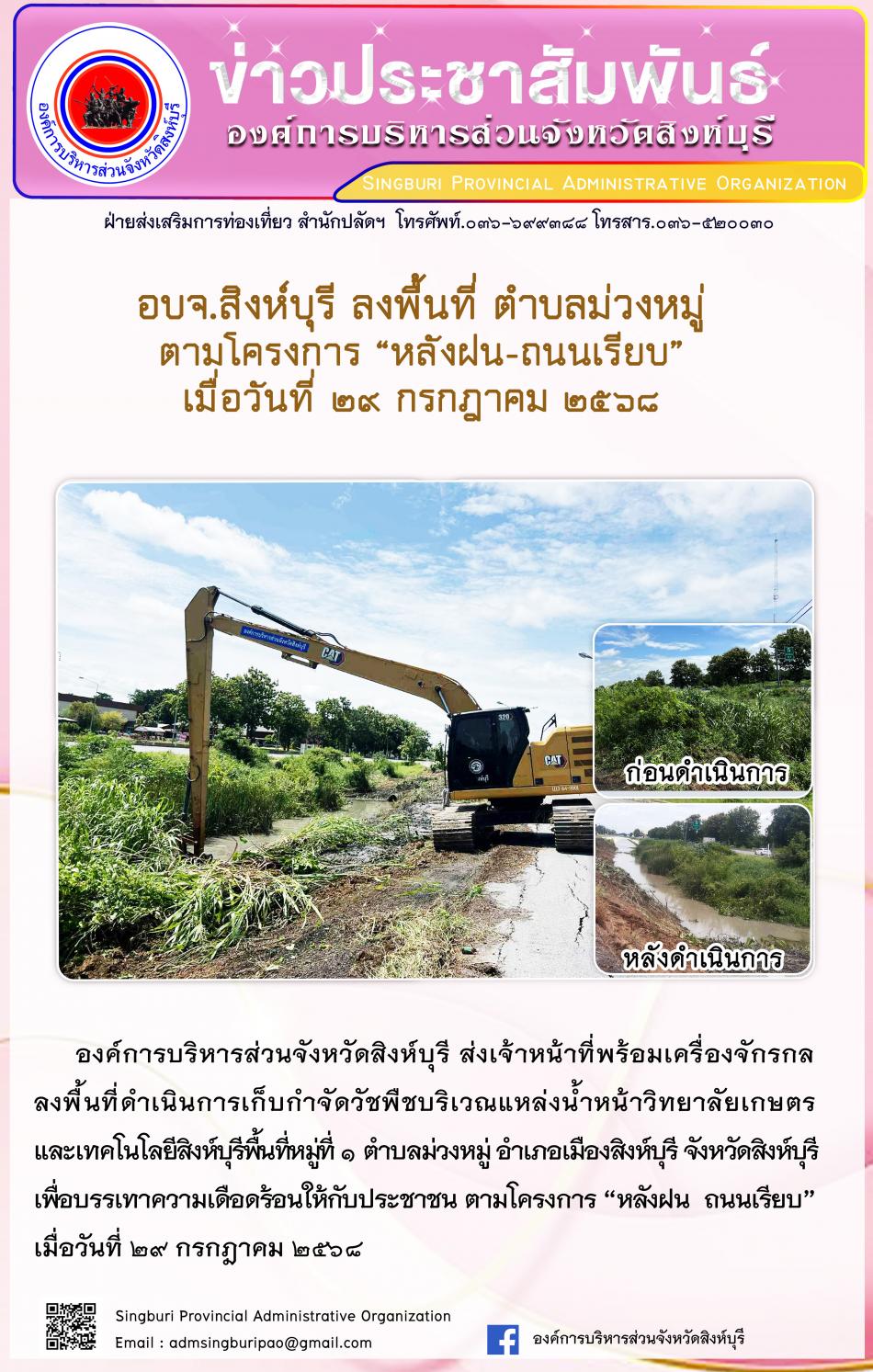 อบจ.สิงห์บุรี ลงพื้นที่ ตำบลม่วงหมู่ ตามโครงการ "หลังฝน - ถนนเรียบ" [29 กรกฎาคม 2568]