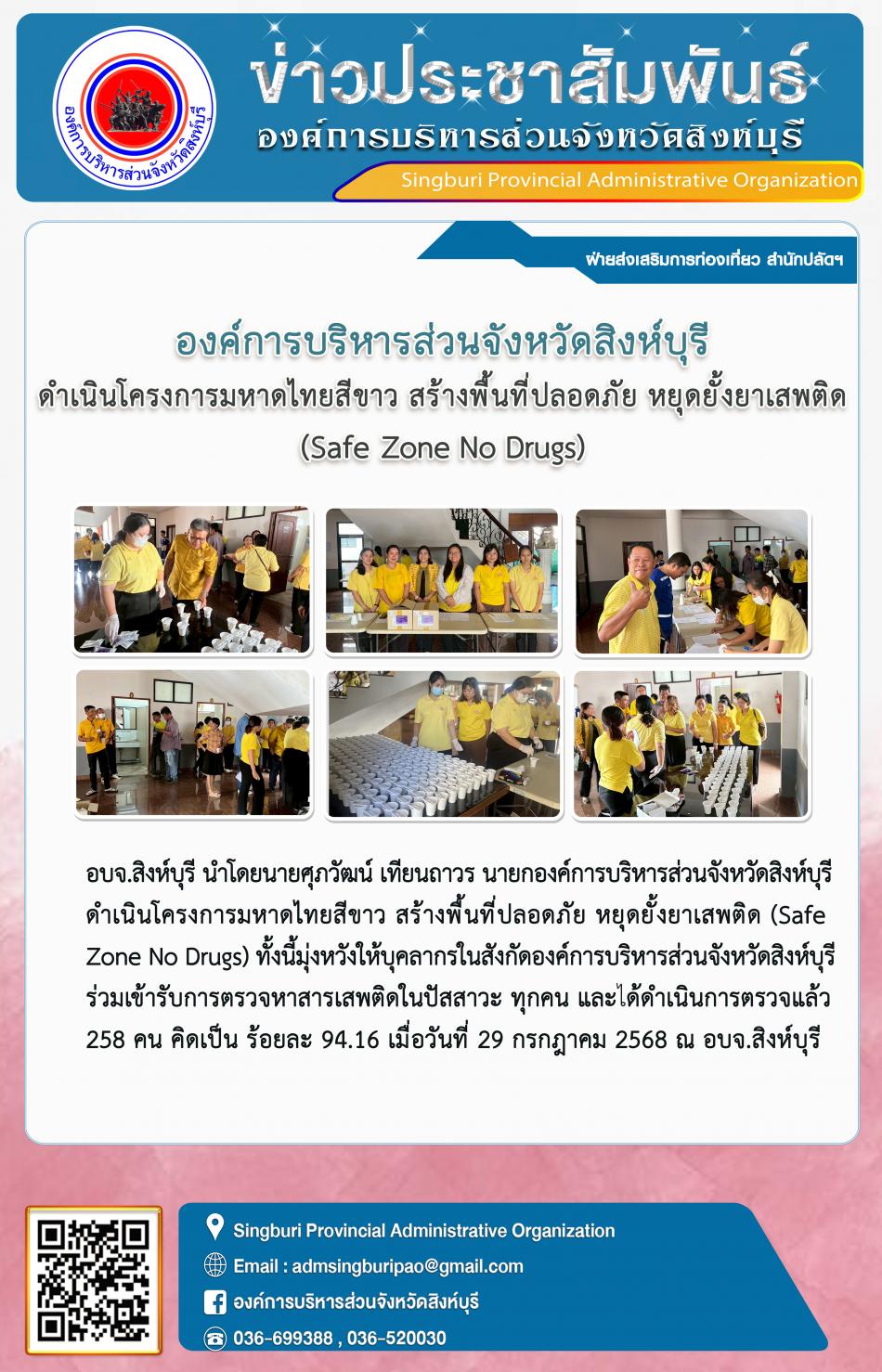 องค์การบริหารส่วนจังหวัดสิงห์บุรี ดำเนินโครงการมหาดไทยสีขาว สร้างพื้นที่ปลอดภัย หยุดยั้งยาเสพติด ( Safe Zone No Drugs) [29 กรกฎาคม 2568]