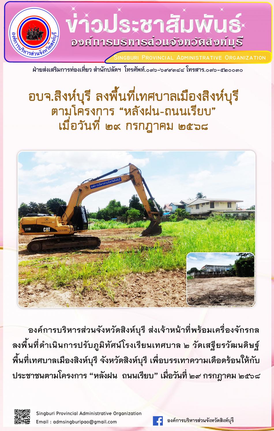อบจ.สิงห์บุรี ลงพื้นที่ เทศบาลเมืองสิงห์บุรี ตามโครงการ "หลังฝน - ถนนเรียบ" [29 กรกฎาคม 2568]