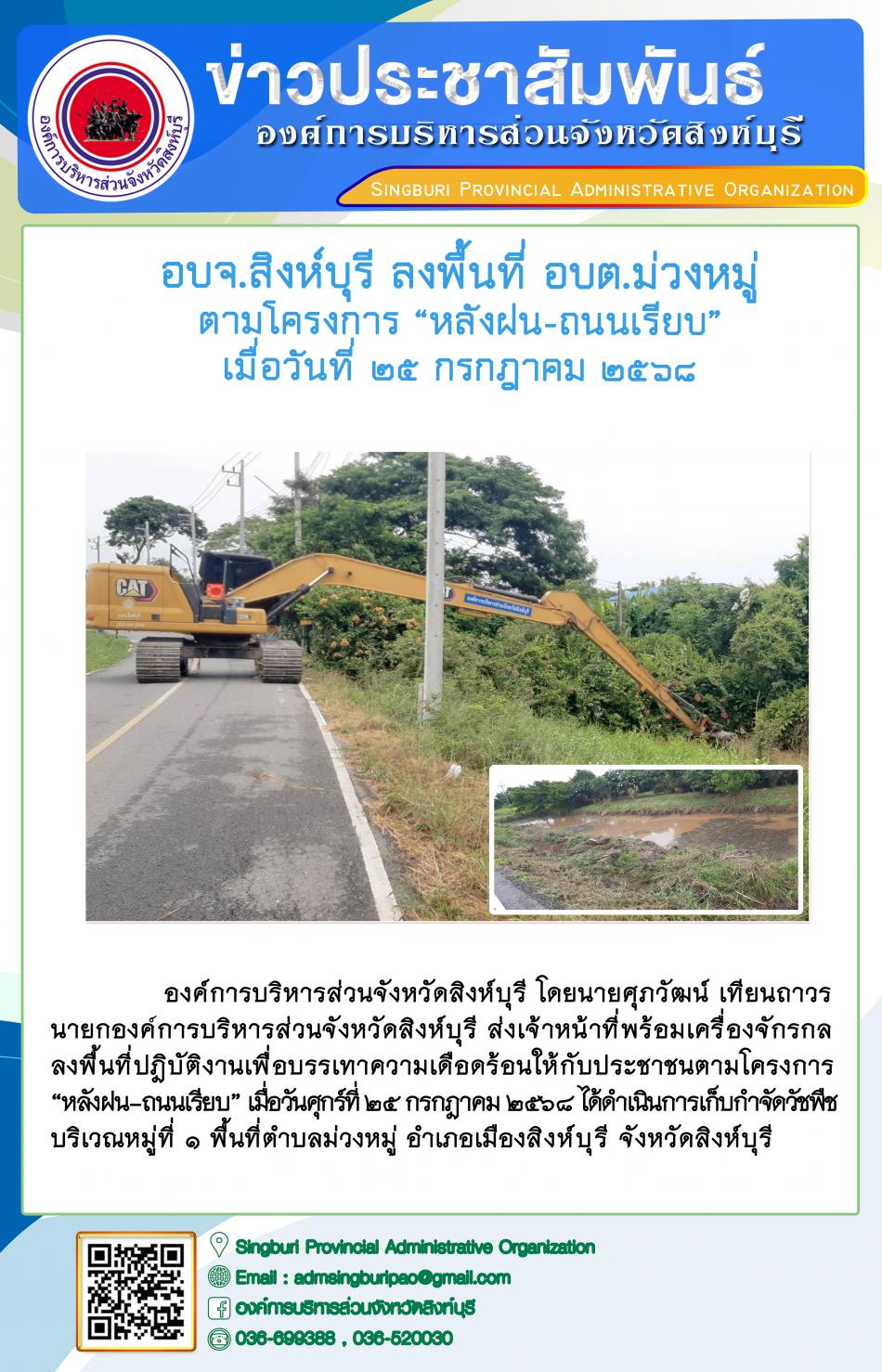 อบจ.สิงห์บุรี ลงพื้นที่ อบต.ม่วงหมู่ ตามโครงการ "หลังฝน - ถนนเรียบ" [25 กรกฎาคม 2568]