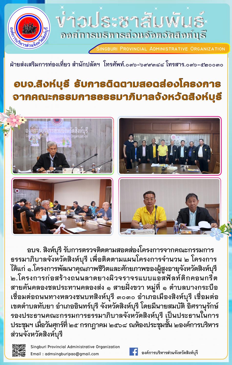 อบจ.สิงห์บุรี รับการติดตามสอดส่องโครงการจากคณะกรรมการธรรมมาภิบาลจังหวัดสิงห์บุรี [25 กรกฎาคม 2568]