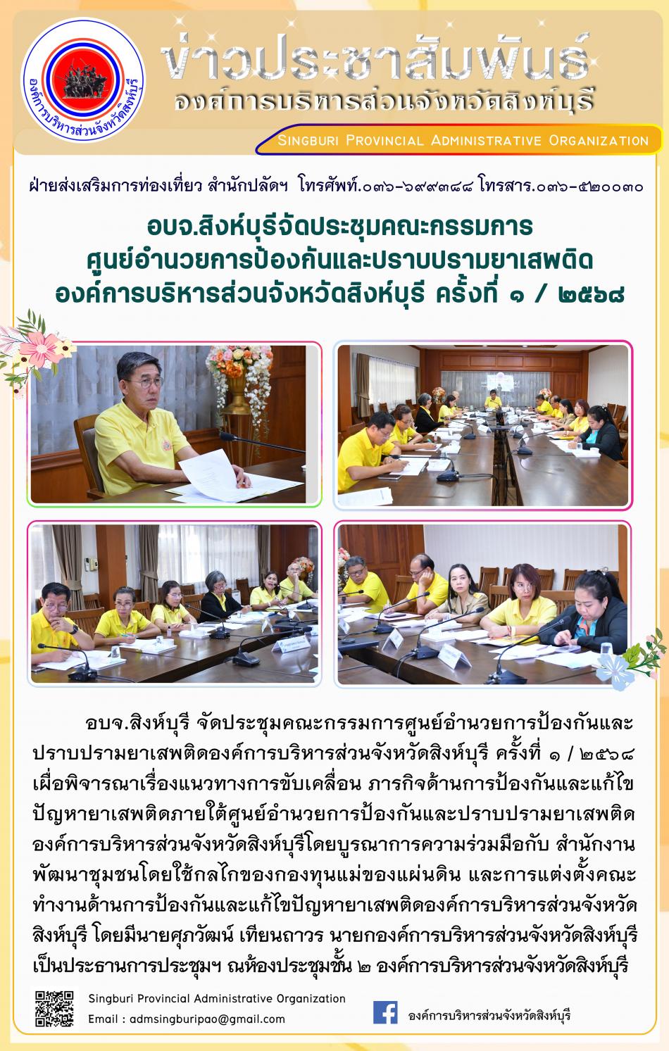 อบจ.สิงห์บุรี จัดการประชุมคณะกรรมการศูนย์อำนวยการป้องกันและปราบปรามยาเสพติด องค์การบริหารส่วนจังหวัดสิงห์บุรี ครั้งที่ 1/2568 [21 กรกฎาคม 2568]