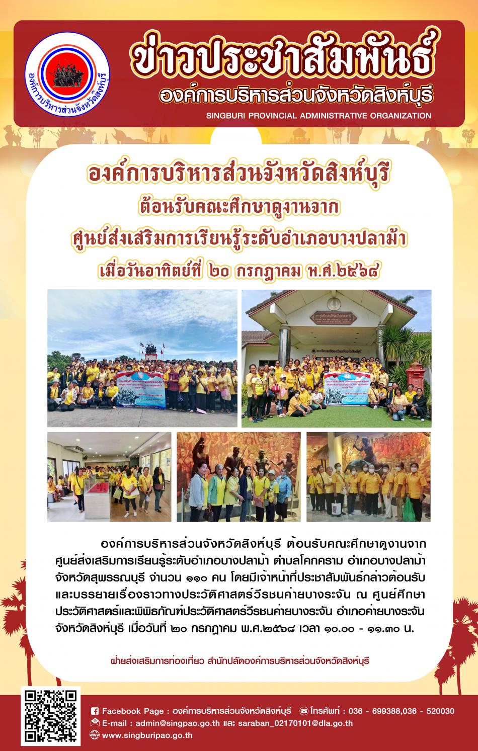 องค์การบริหารส่วนจังหวัดสิงห์บุรี ต้อนรับคณะศึกษาดูงานจากศูนย์ส่งเสริมการเรียนรู้ระดับอำเภอบางปลาม้า [20 กรกฎาคม 2568]