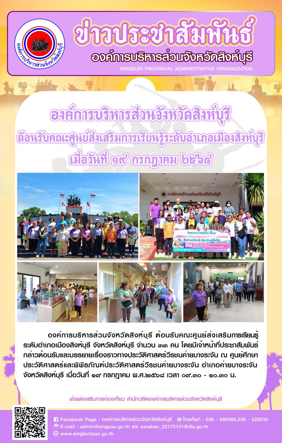 องค์การบริหารส่วนจังหวัดสิงห์บุรี ต้อนรับคณะศูนย์ส่งเสริมการเรียนรู้ระดับอำเภอเมืองสิงห์บุรี [19 กรกฎาคม 2568]
