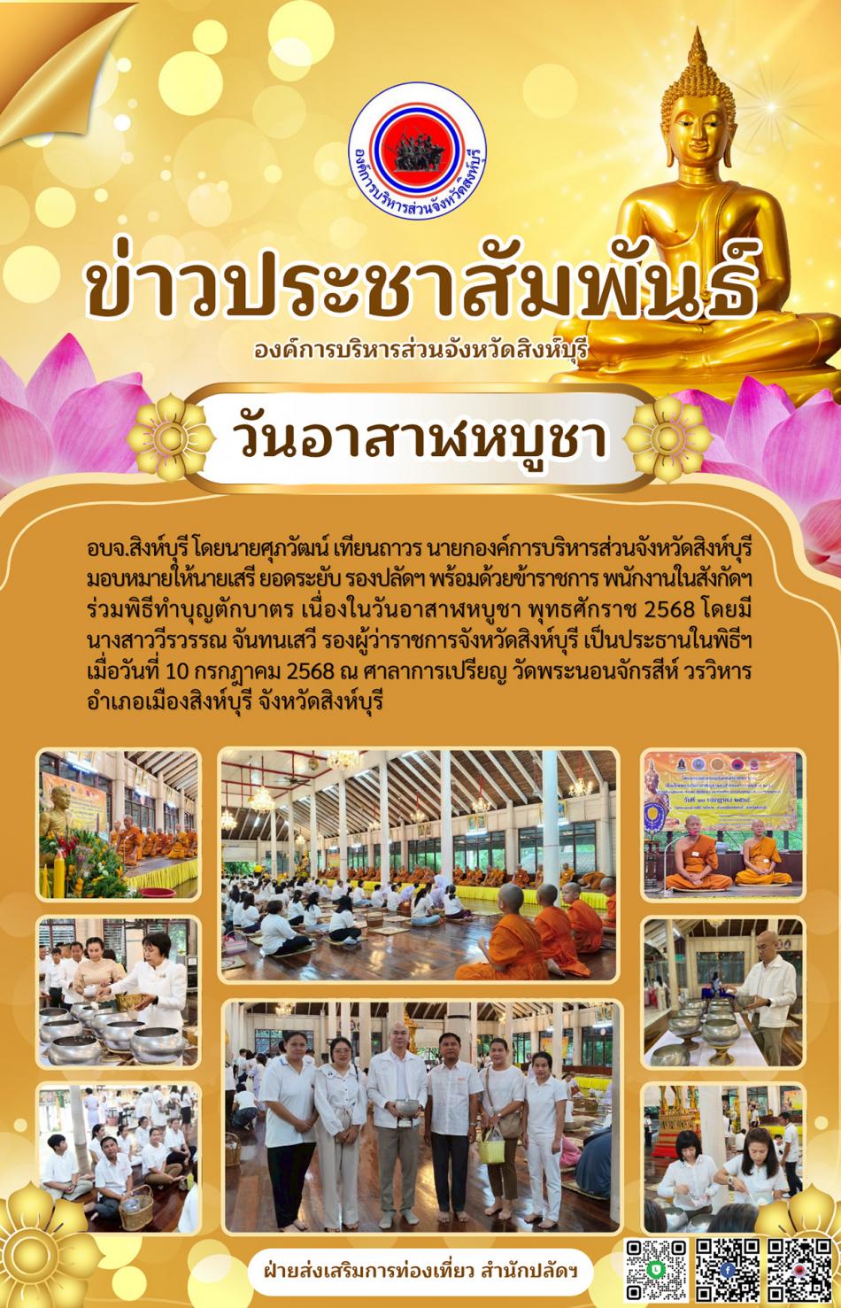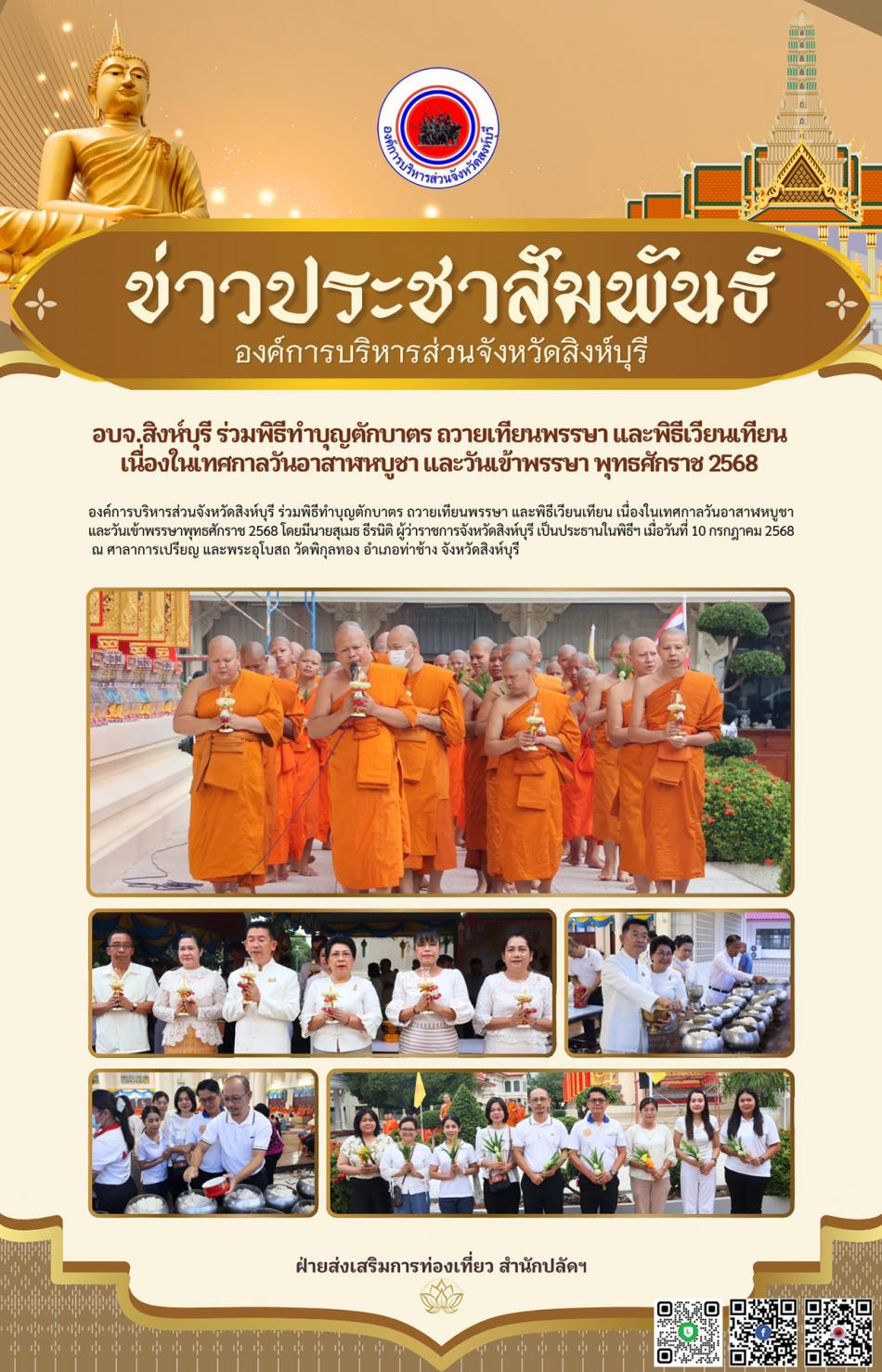 อบจ.สิงห์บุรี ร่วมพิธีทำบุญตักบาตร ถวายเทียนพรรษา และพิธีเวียนเทียน เนื่องในเทศกาลวันอาสาฬหบูชา และวันเข้าพรรษา พุทธสักราช 2568 [10 กรกฎาคม 2568]