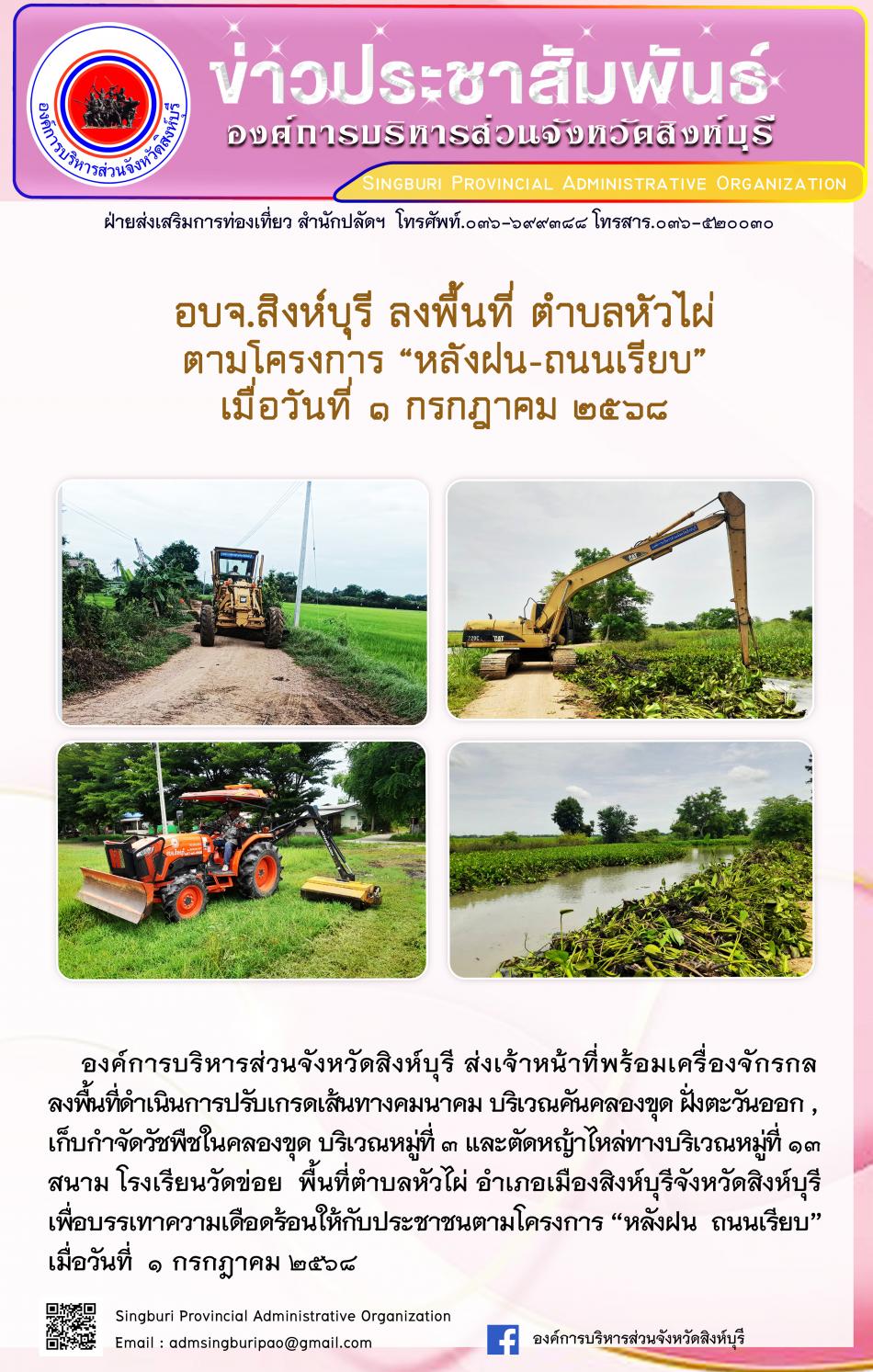 อบจ.สิงห์บุรี ลงพื้นที่ ตำบลหัวไผ่ ตามโครงการ "หลังฝน - ถนนเรียบ" [1 กรกฎาคม 2568]