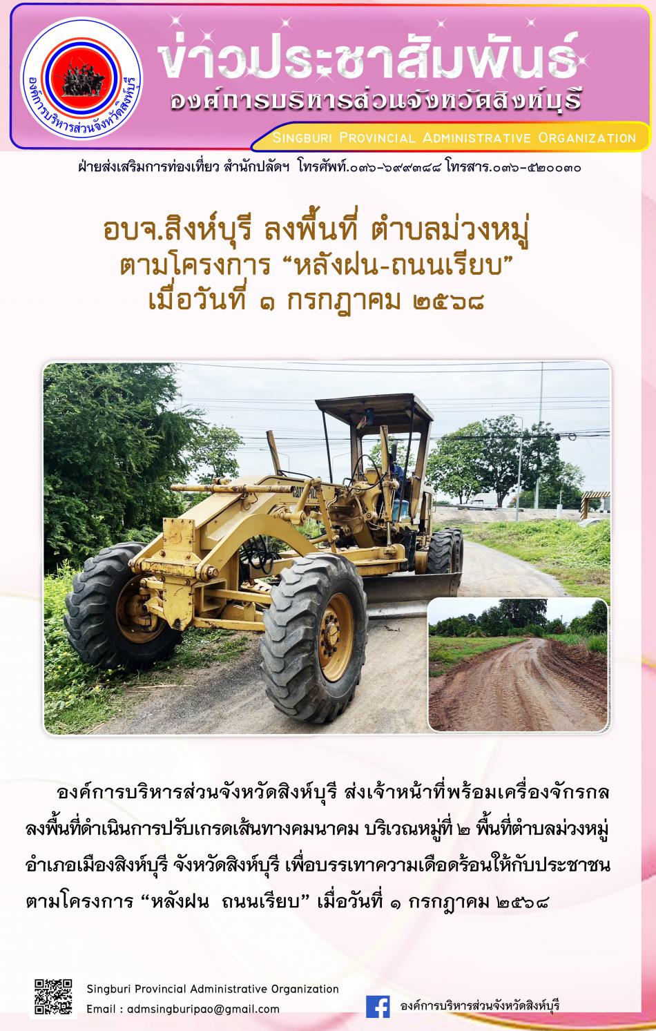 อบจ.สิงห์บุรี ลงพื้นที่ ตำบลม่วงหมู่ ตามโครงการ "หลังฝน - ถนนเรียบ" [1 กรกฎาคม 2568]