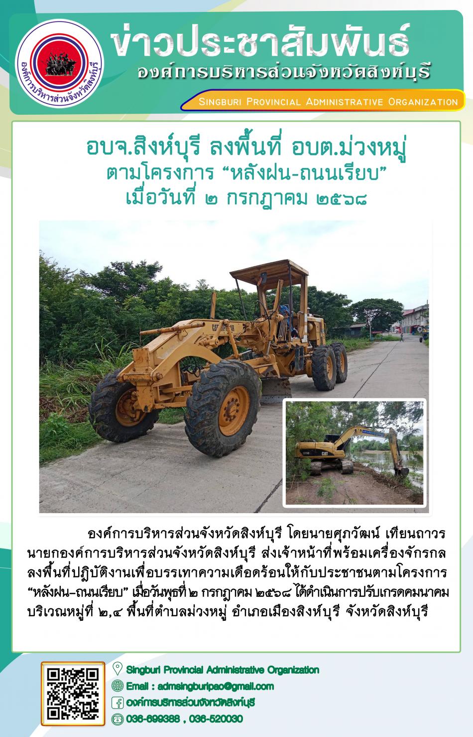 อบจ.สิงห์บุรี ลงพื้นที่ อบต.ม่วงหมู่ ตามโครงการ "หลังฝน - ถนนเรียบ" [2 กรกฎาคม 2568]