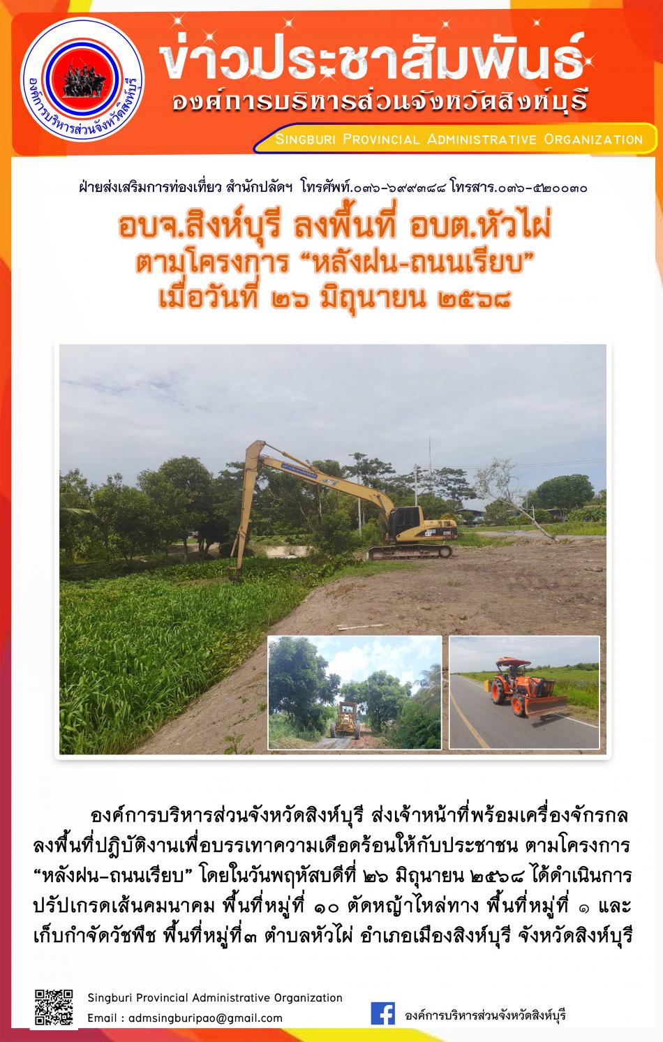 อบจ.สิงห์บุรี ลงพื้นที่ อบต.หัวไผ่ ตามโครงการ "หลังฝน - ถนนเรียบ" [26 มิถุนายน 2568]