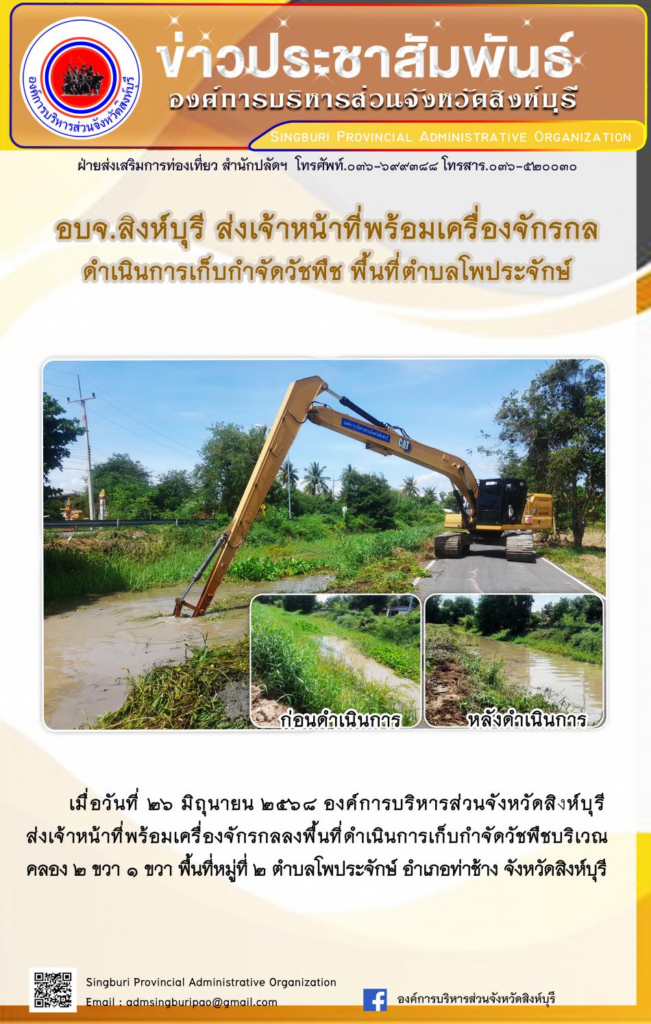 อบจ.สิงห์บุรี ส่งเจ้าหน้าที่พร้อมเครื่องจักรกล เก็บกำจัดวัชพืช พื้นที่ตำบลโพประจักษ์ [26 มิถุนายน 2568]
