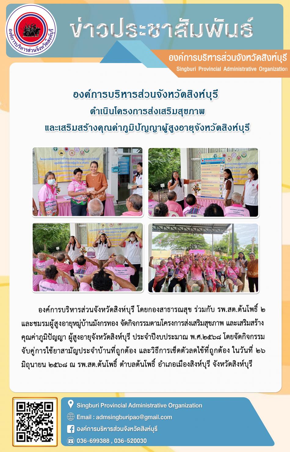 อบจ.สิงห์บุรี ดำเนินโครงการส่งเสริมสร้างคุณค่าภูมิปัญญาผู้สูงอายุจังหวัดสิงห์บุรี [26 มิถุนายน 2568]
