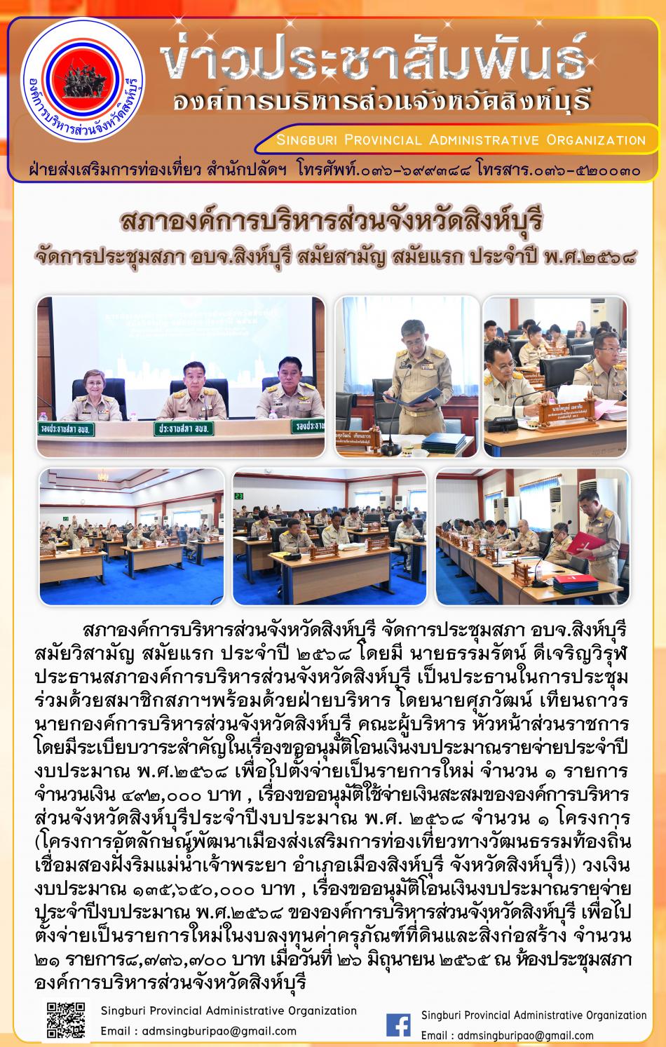 สภาองค์การบริหารส่วนจังหวัดสิงห์บุรี จัดการประชุม อบจ.สิงห์บุรี สมัยสามัญ สมัยแรก ประจำปี พ.ศ.2568 [26 มิถุนายน 2568]