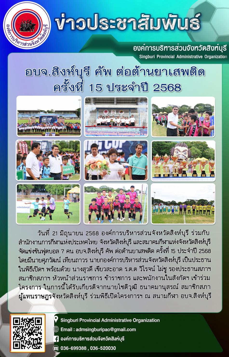 อบจ.สิงห์บุรี คัพ ต่อต้านยาเสพติด ครั้งที่ 15 ประจำปี 2568 [21 มิถุนายน 2568]